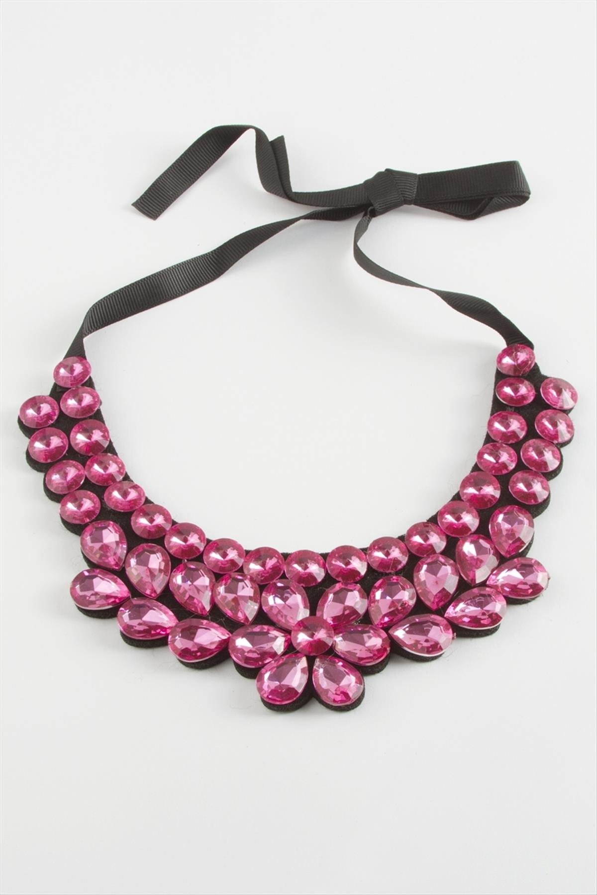 Papatya Taşlı Yaka Kolye-Pembe