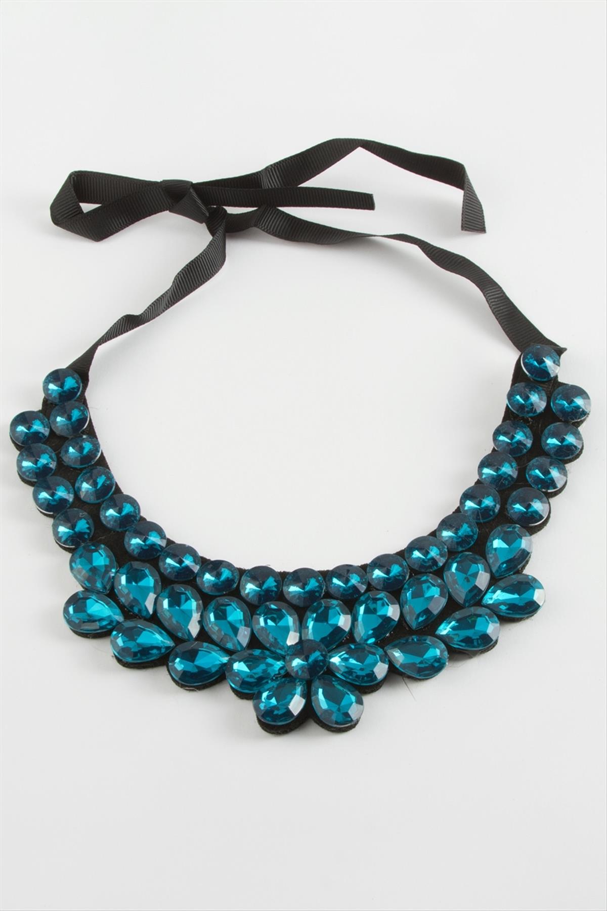 Papatya Taşlı Yaka Kolye-Petrol Yeşili