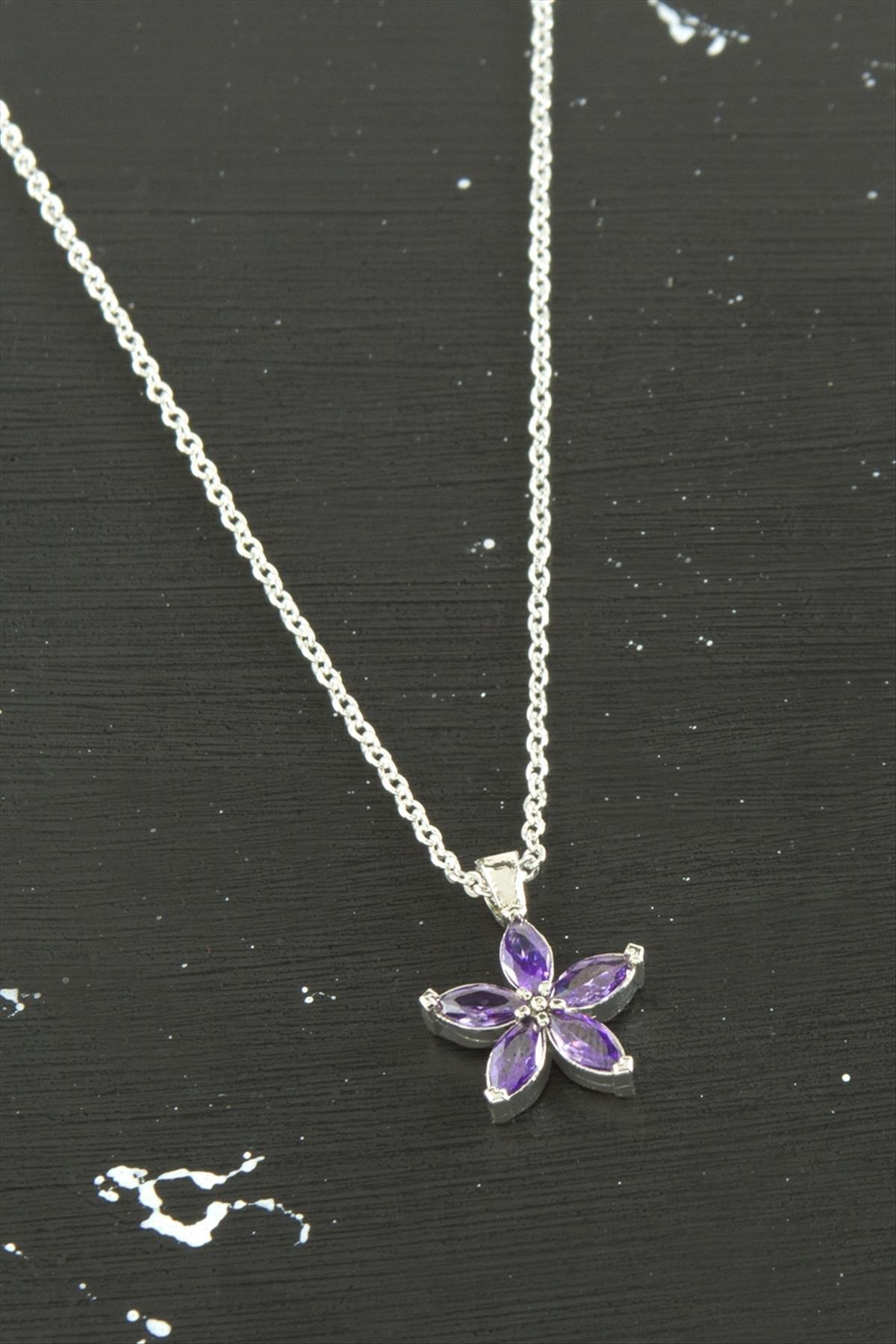 Papatya Zirkon Taşlı Trend Kolye-Mor