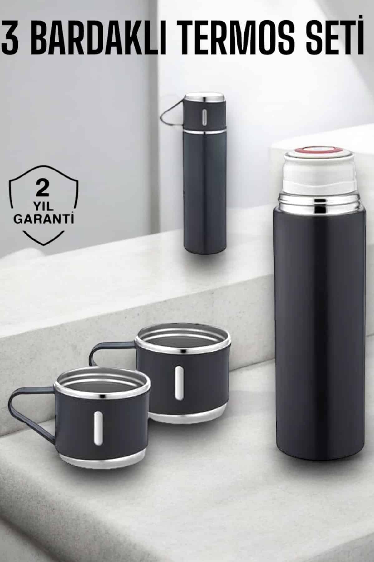 Gün boyunca sıcak ya da soğuk içeceğiniz hep elinizin altında! Paslanmaz çelikten üretilen bu 3’lü termos seti, 8 saate kadar ısıyı muhafaza eden vakumlu tasarımıyla uzun süreli kullanım sunar. 500 ml kapasitesi sayesinde ister çay, ister kahve, isterseniz soğuk içeceklerinizi keyifle taşıyabilirsiniz. Basınçlı kapağı sızdırmazlık sağlarken, elde yıkanabilir yapısıyla pratik bir temizlik imkanı sunar. Evde, ofiste ya da doğada her anınız için mükemmel bir tercih!