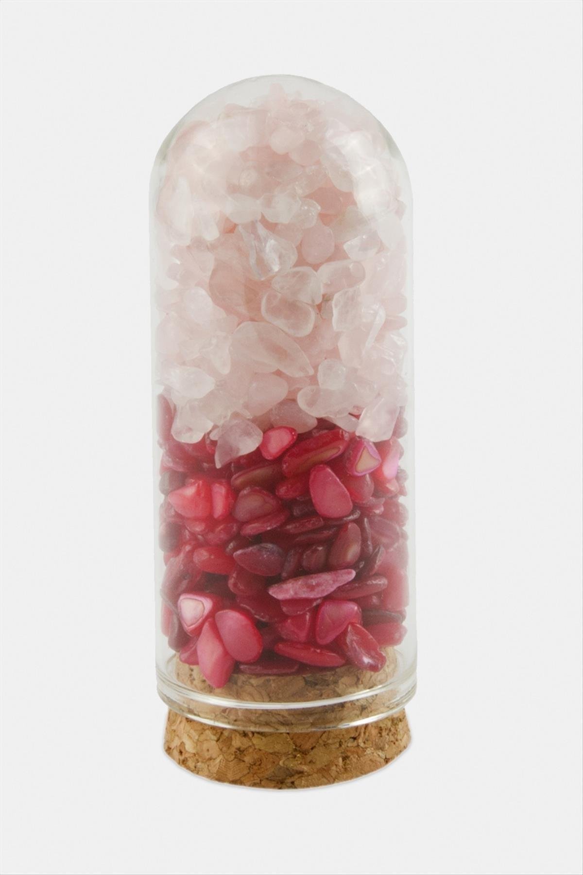 Pembe Kuvars Akik Taşı Cam Şişe Biblo-Pembe