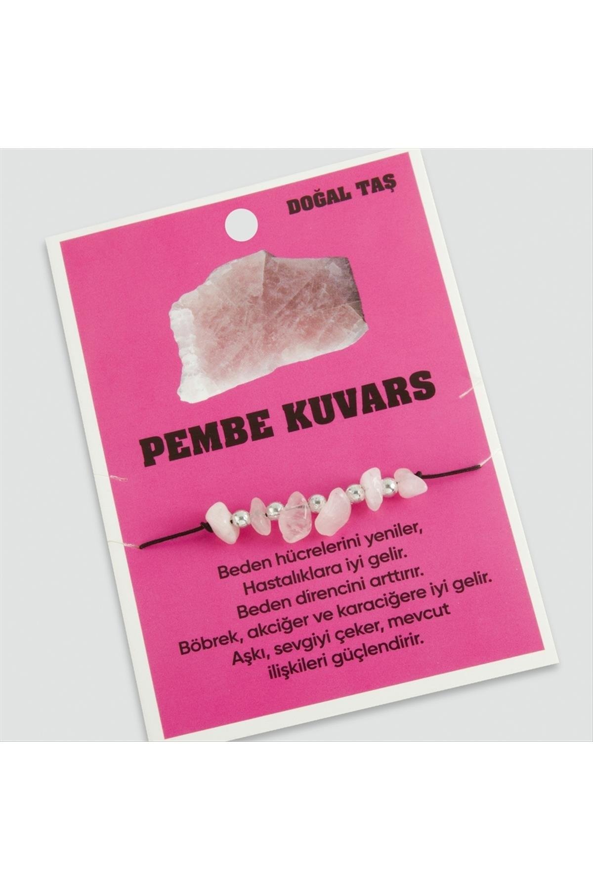 Pembe Kuvars Doğaltaşlı İp Bileklik-Pembe