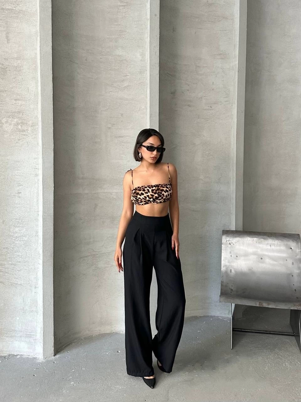 Pileli keten pantolon s255046 Siyah (Beden: L)