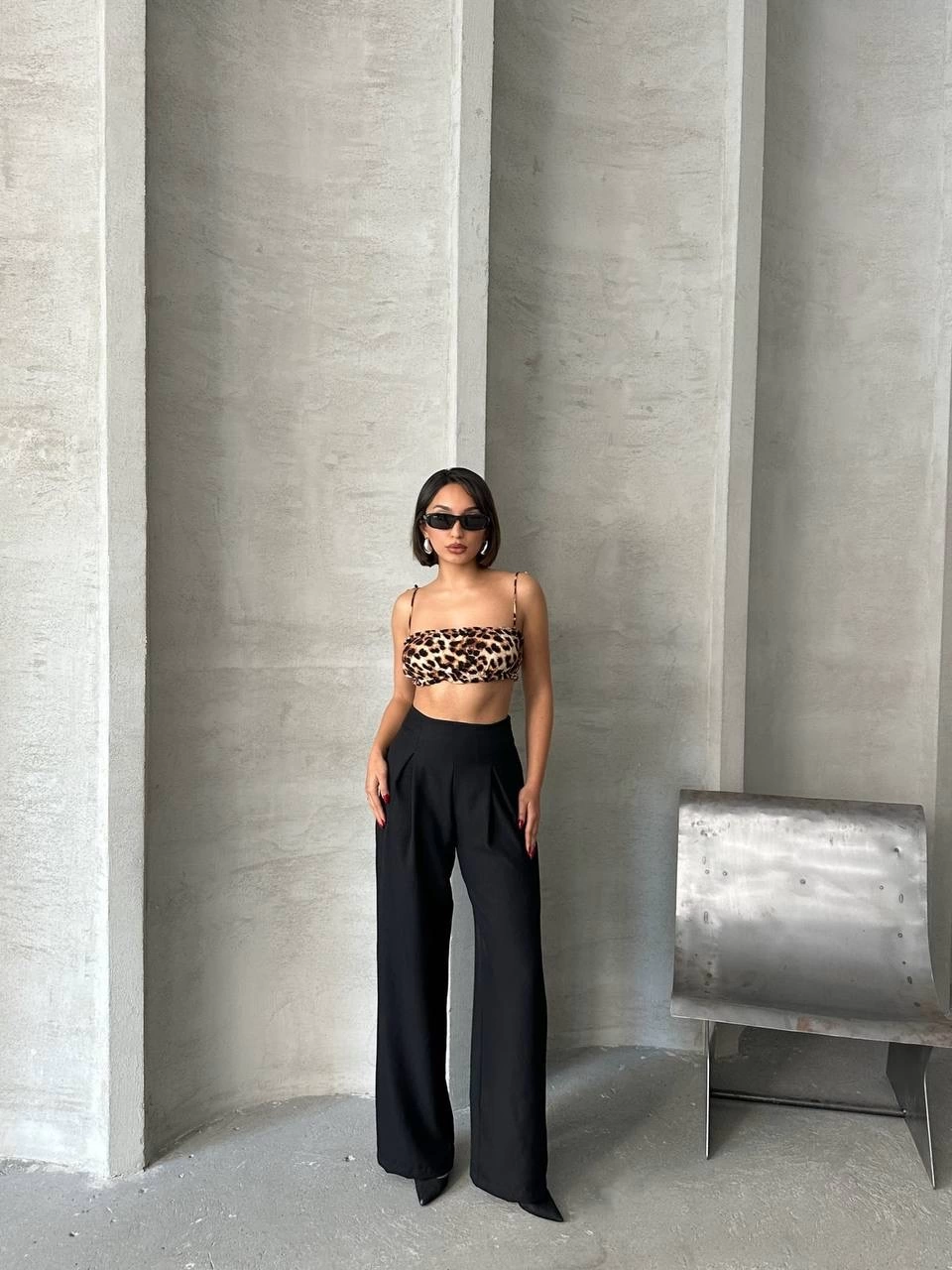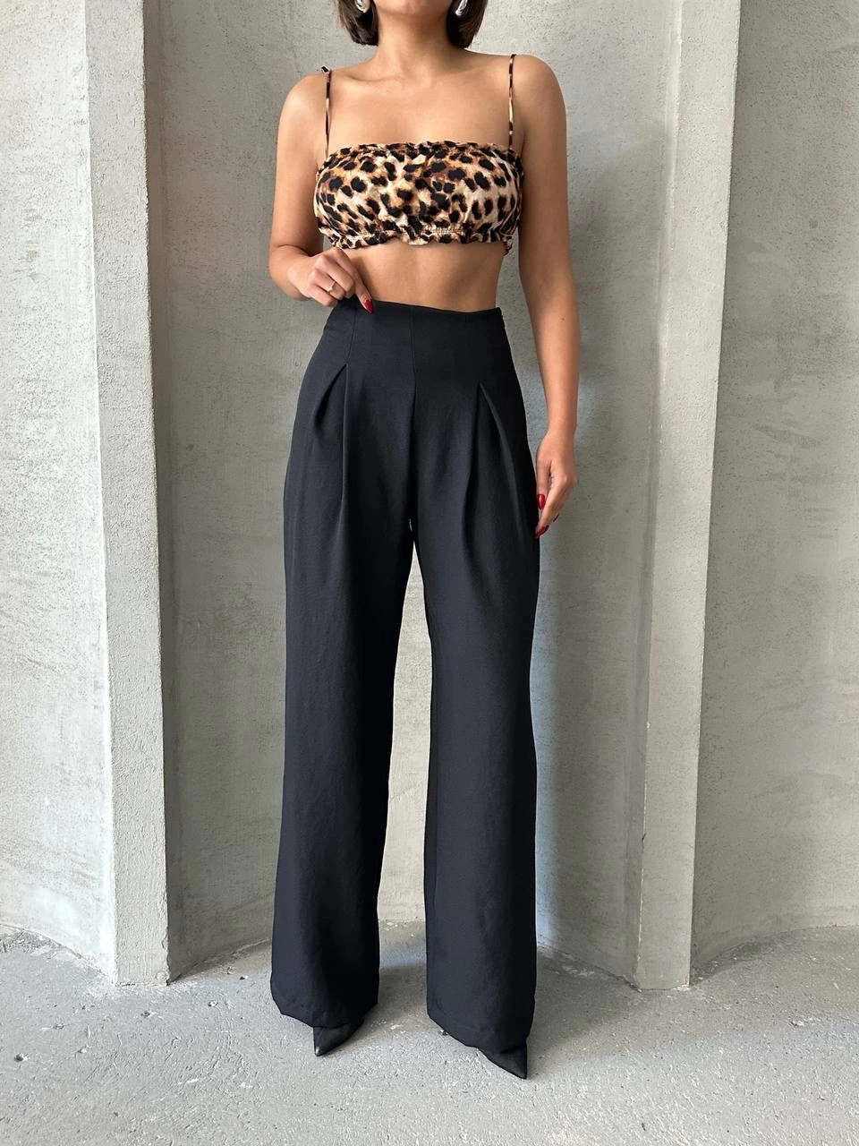 Pileli keten pantolon s255046 Siyah (Beden: M)