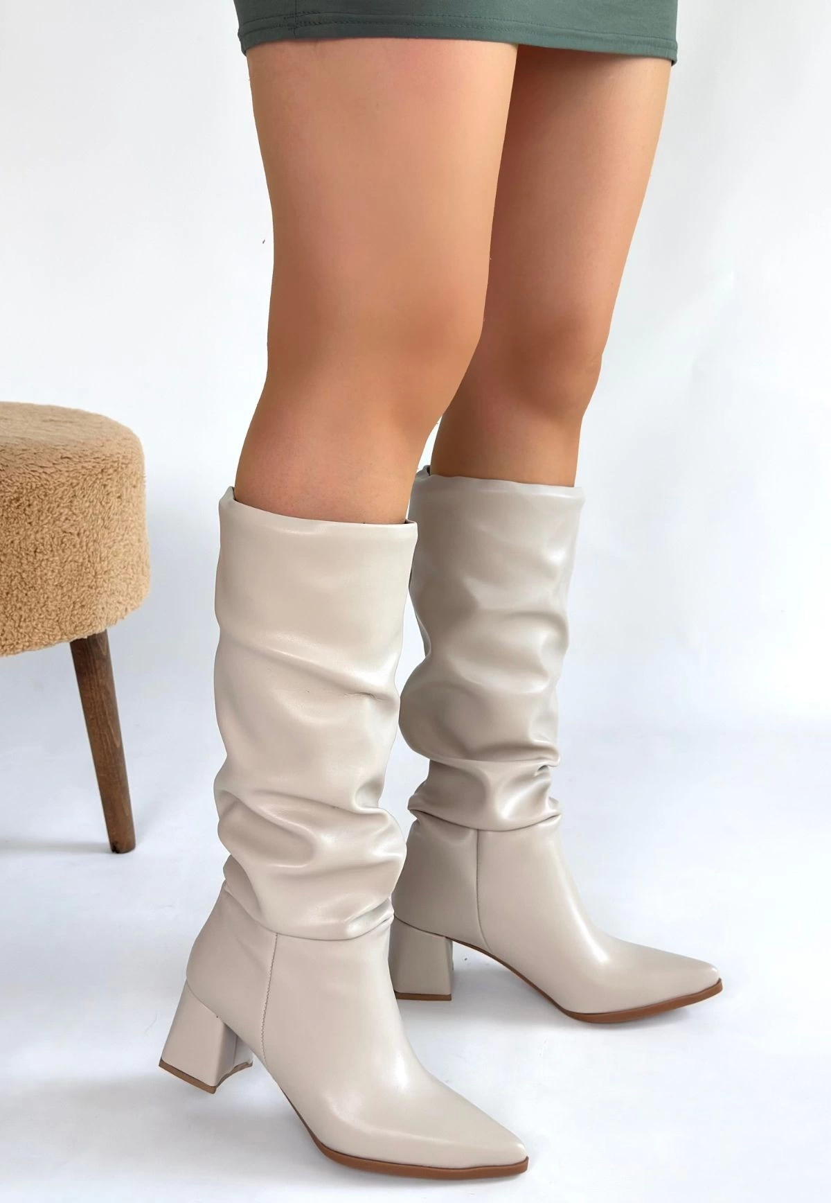 Detay: Topuklu Diz Altı Körüklü Çizme