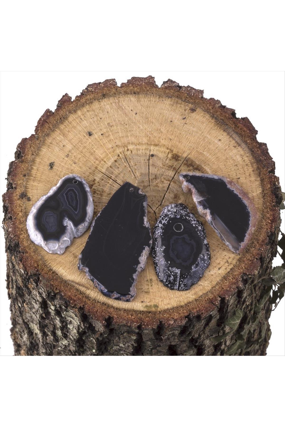 Plaka Akik Kolye Ucu-Parlak Siyah