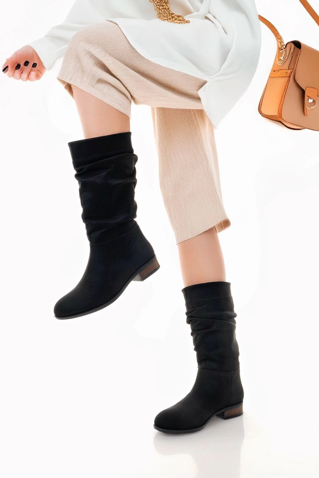 Detay: Topuklu Diz Altı Körüklü Çizme