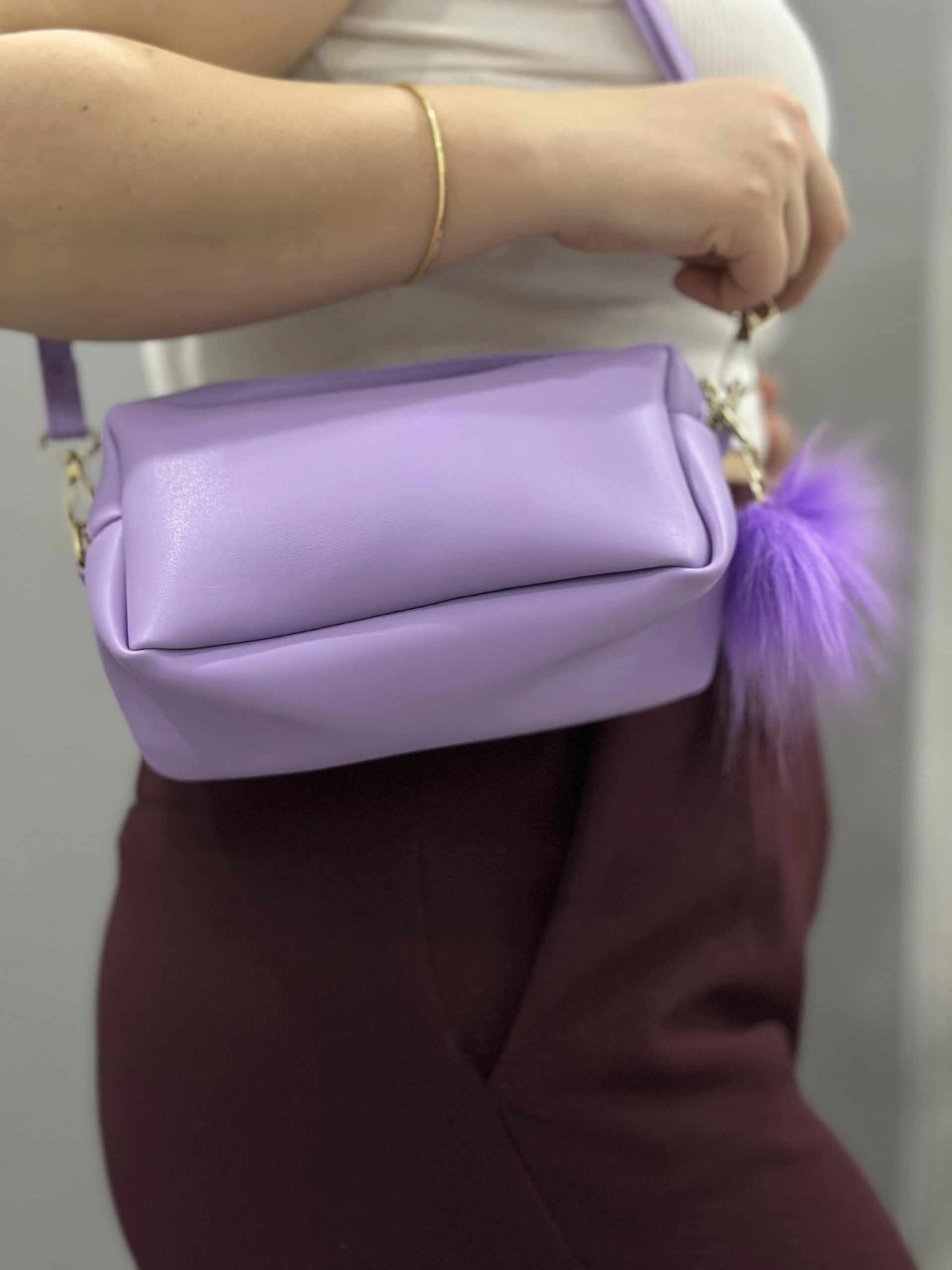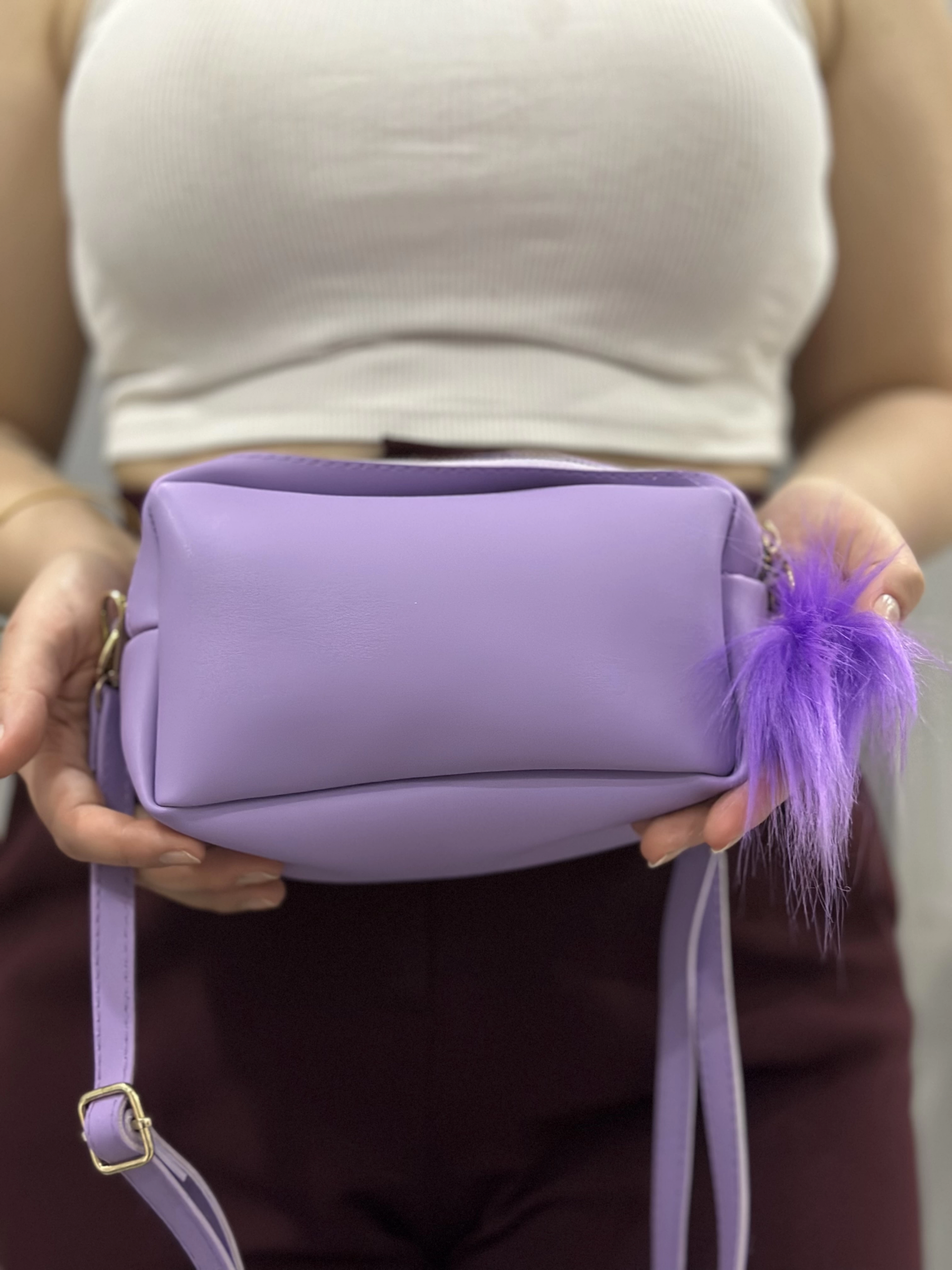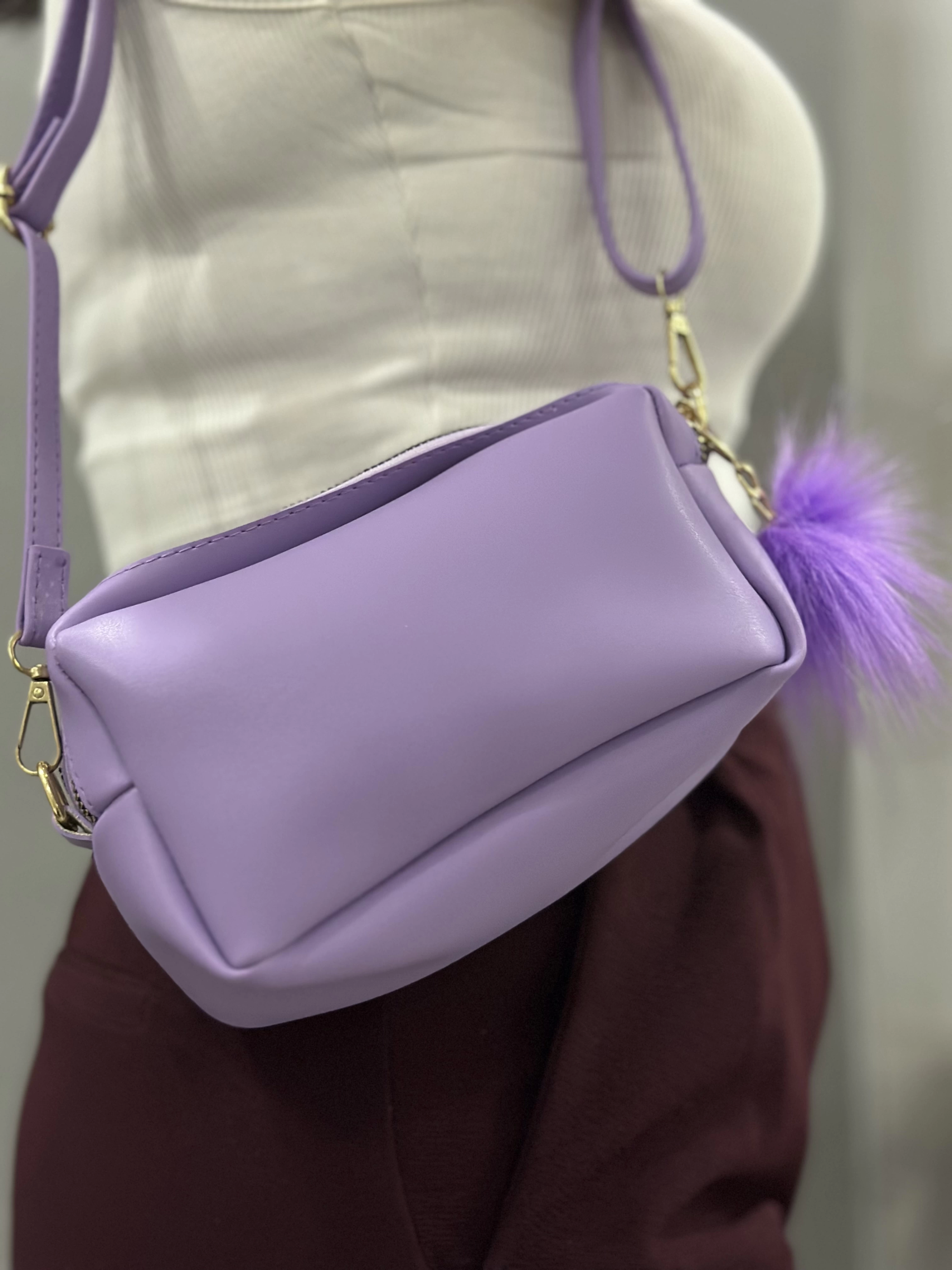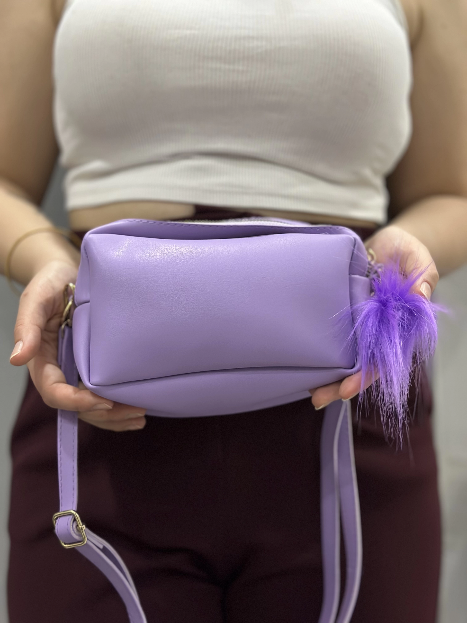 Ponpon mor cilt çanta (Beden: STANDART)