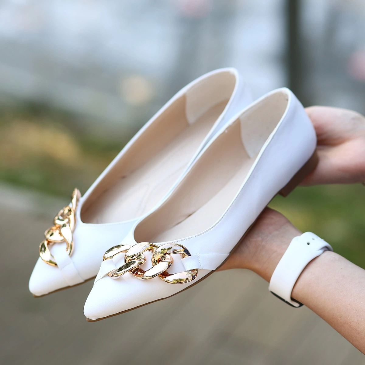 Popi Beyaz Cilt Zincirli Babet Ayakkabı (Numara: 37)