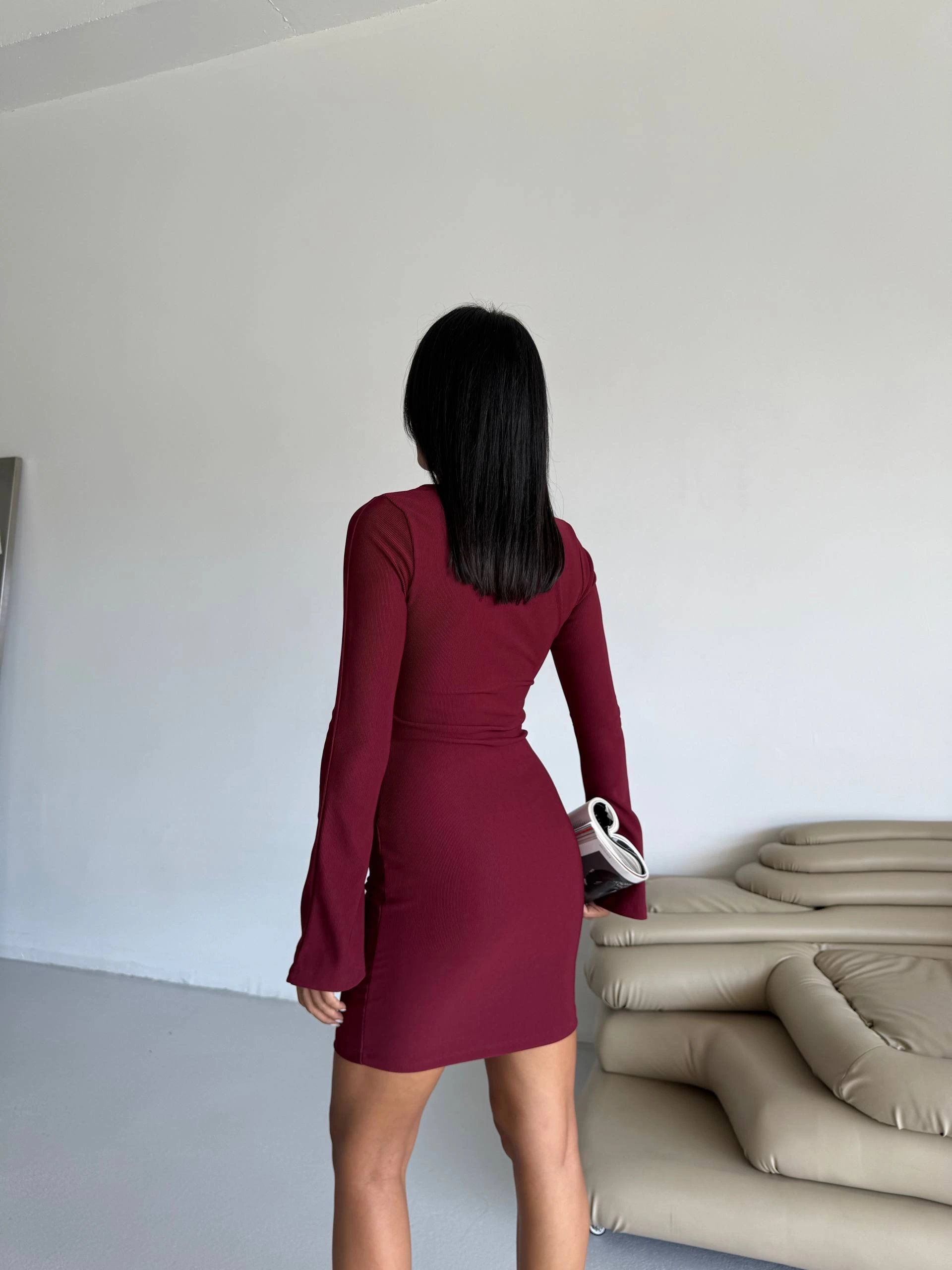 Prenses kol esnek kumaş elbise bordo f2334 (Beden: L)