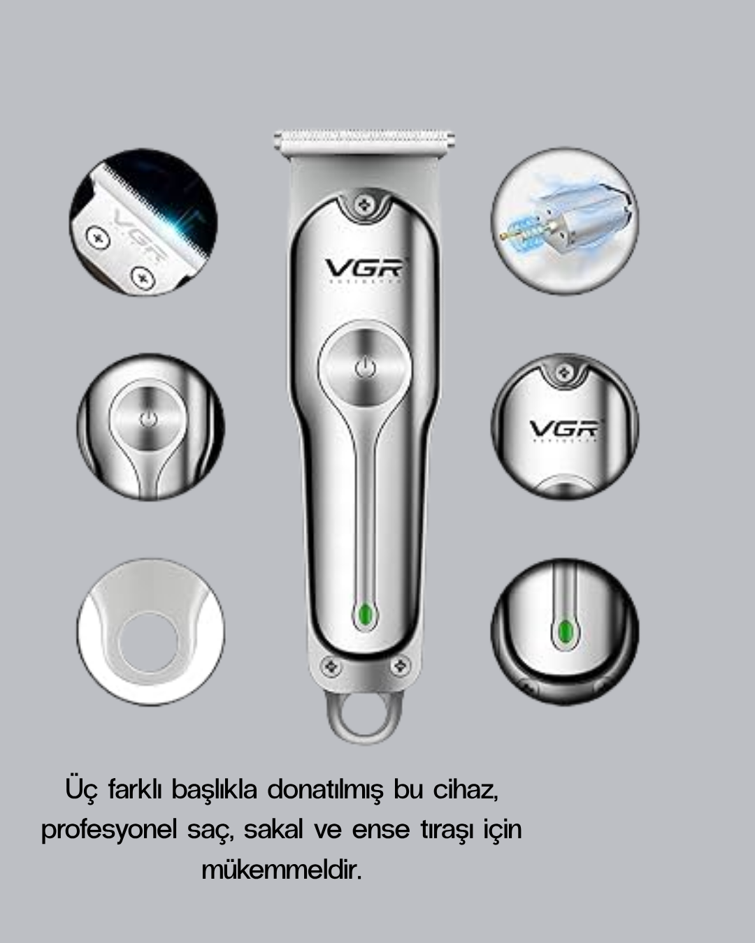 Üç farklı başlık ile donatılmış bu cihaz, saç, sakal ve ense tıraşında üstün hassasiyet sağlar. Profesyonel kuaför standardında kesim imkânı sunan başlıklar, kolay değiştirilebilir yapısıyla farklı ihtiyaçlara anında uyum sağlar.