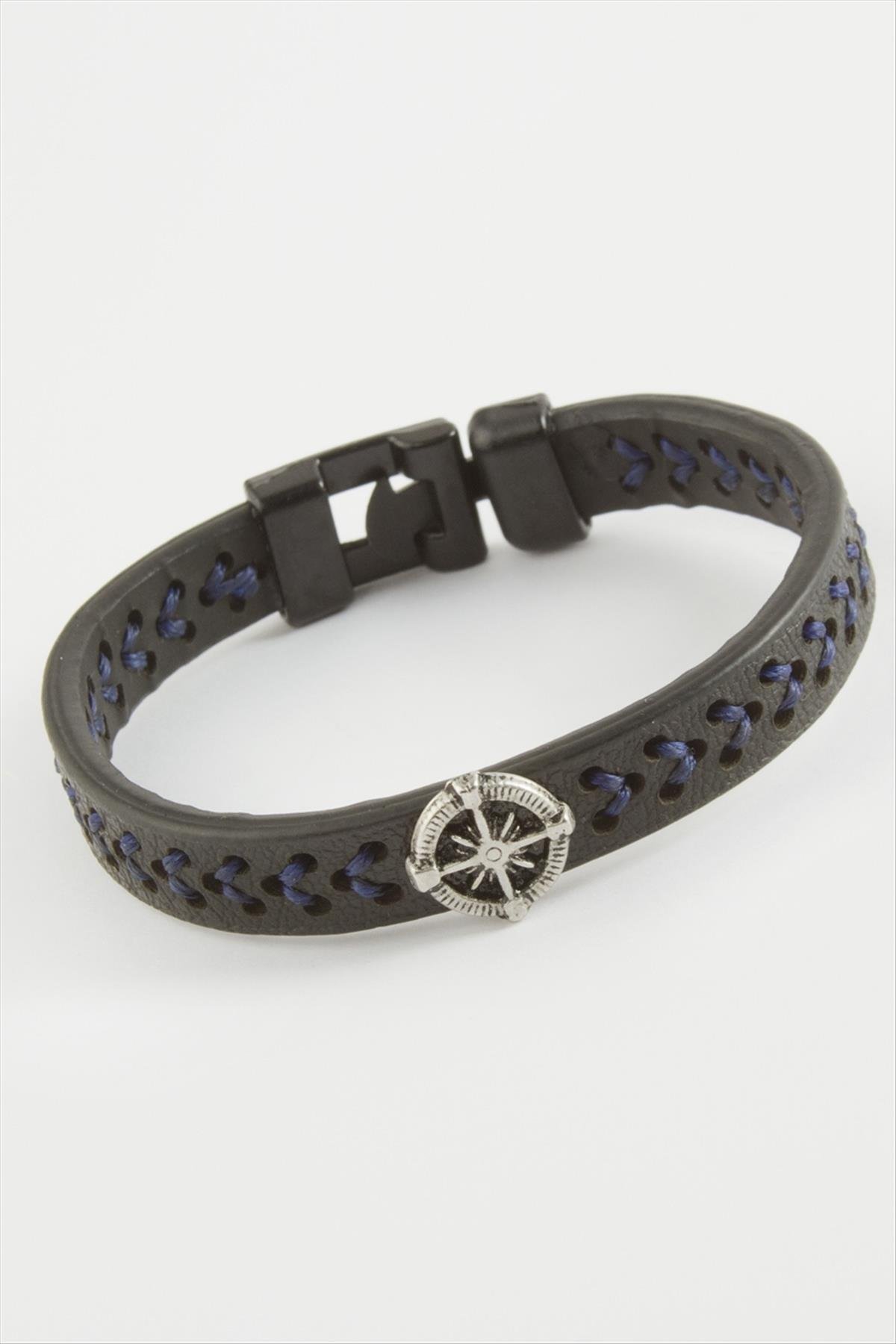 Pusula Kaliteli Suni Deri Bileklik-Siyah