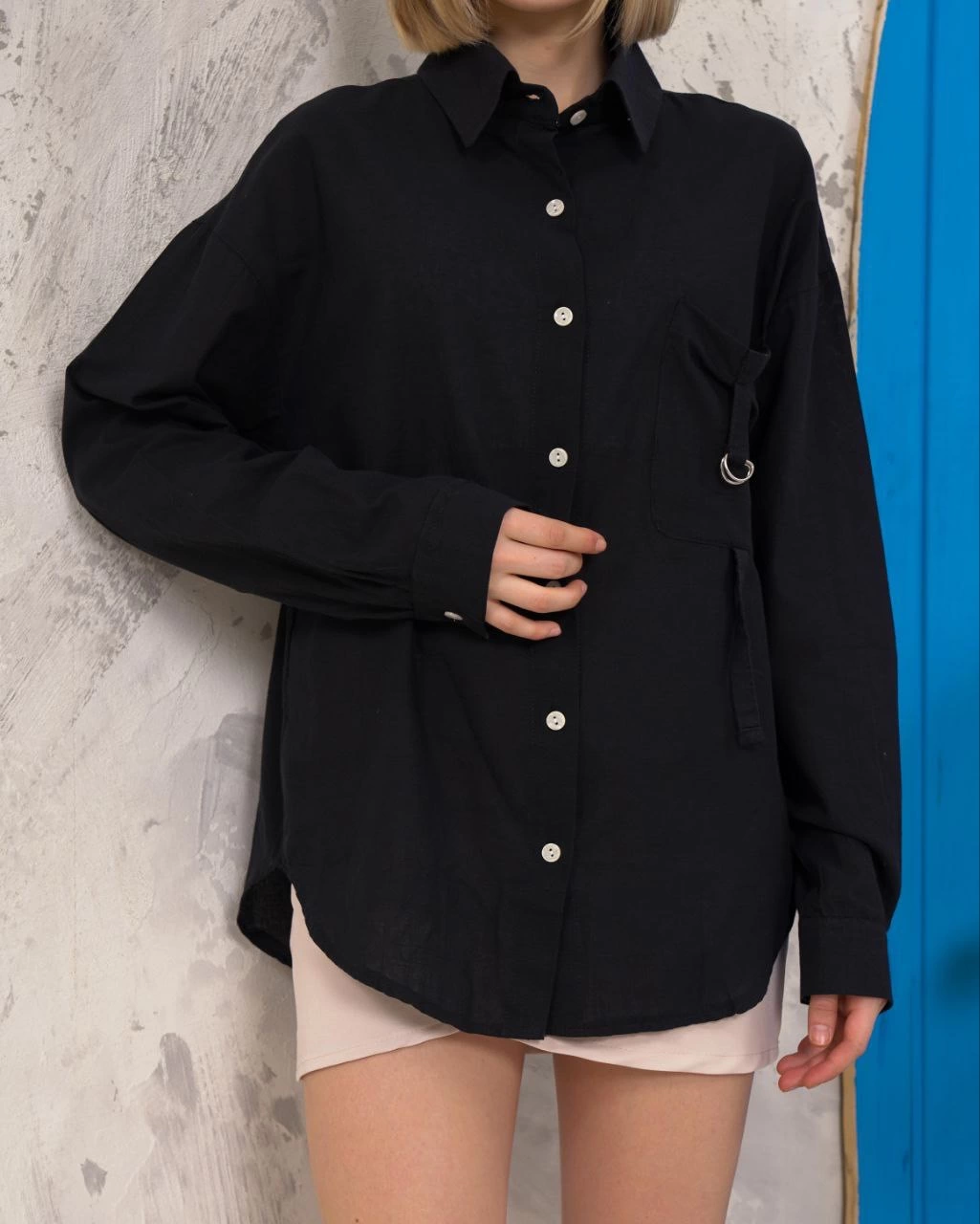 Relax fit keten gömlek siyah s255349 (Beden: S)