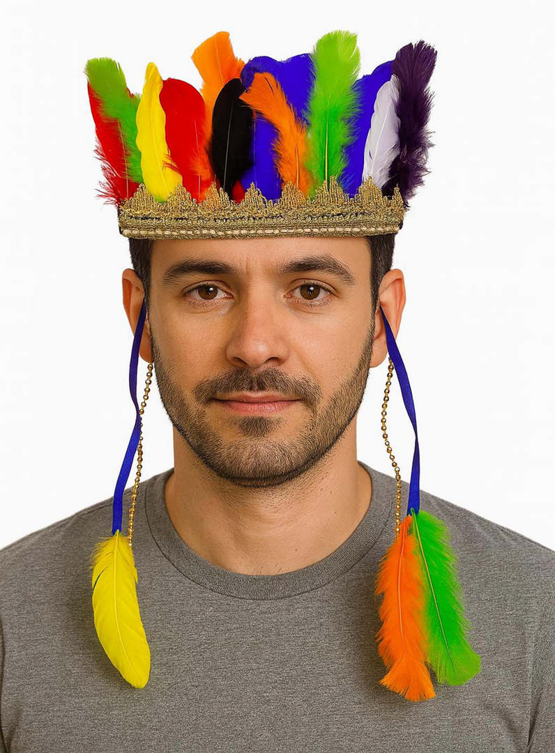 Rengarenk Tüylerle İşlenmiş Lastikli Kızılderili Başlığı