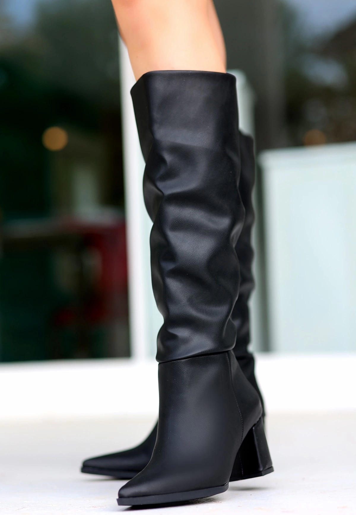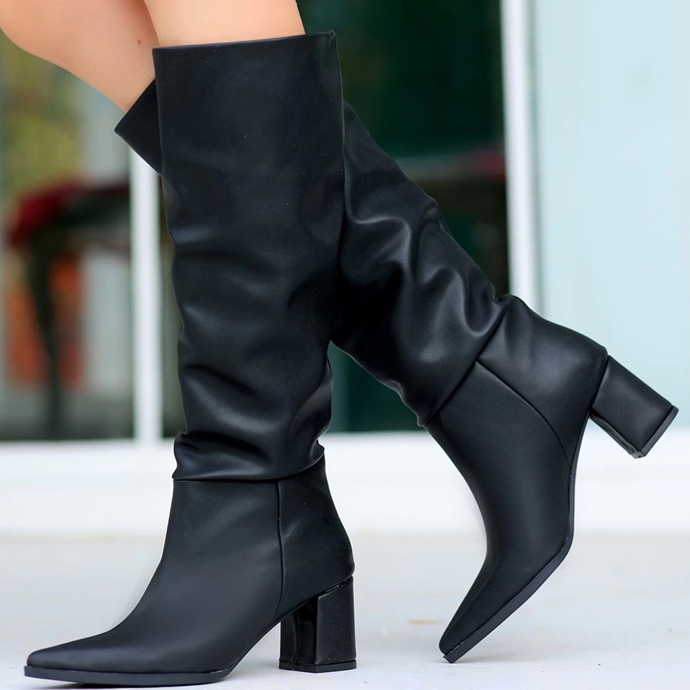 Roksa Siyah Cilt Topuklu Çizme (Numara: 38)