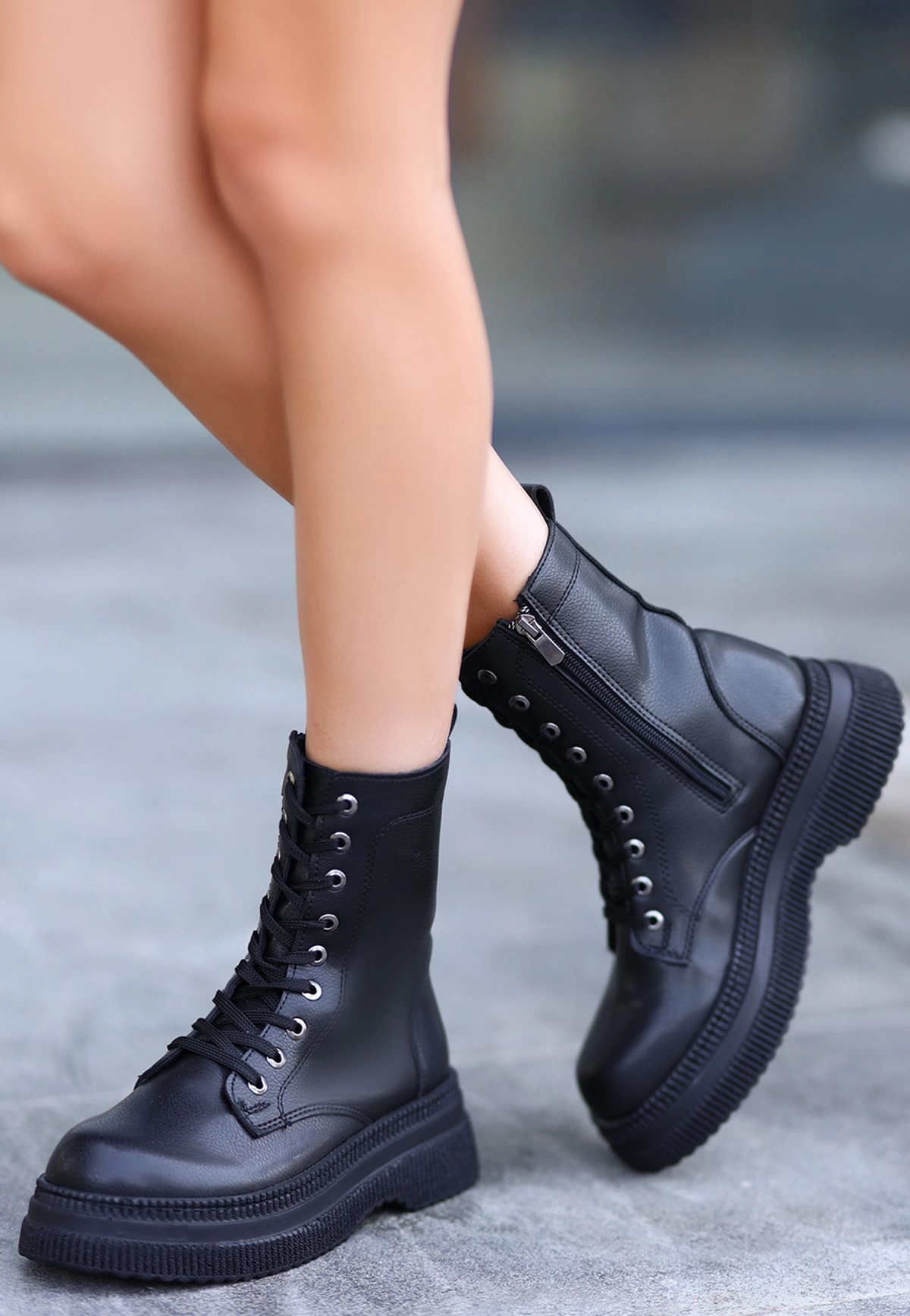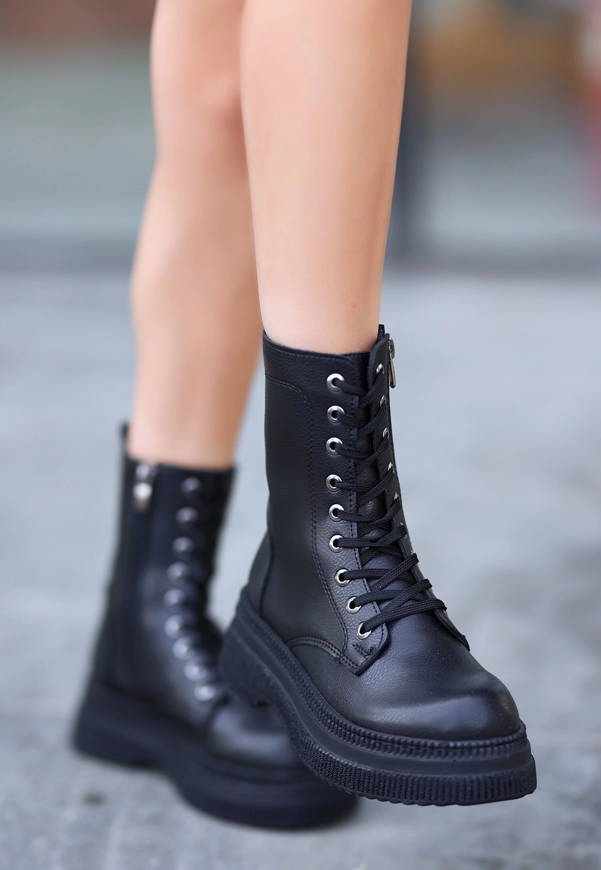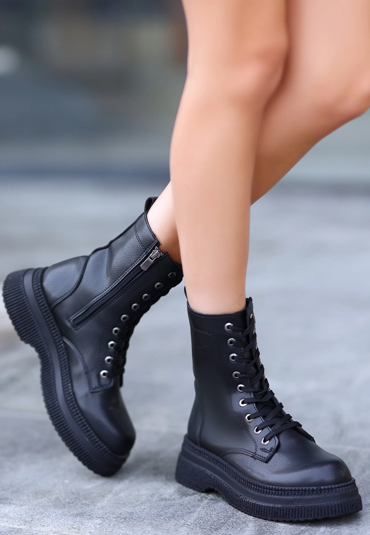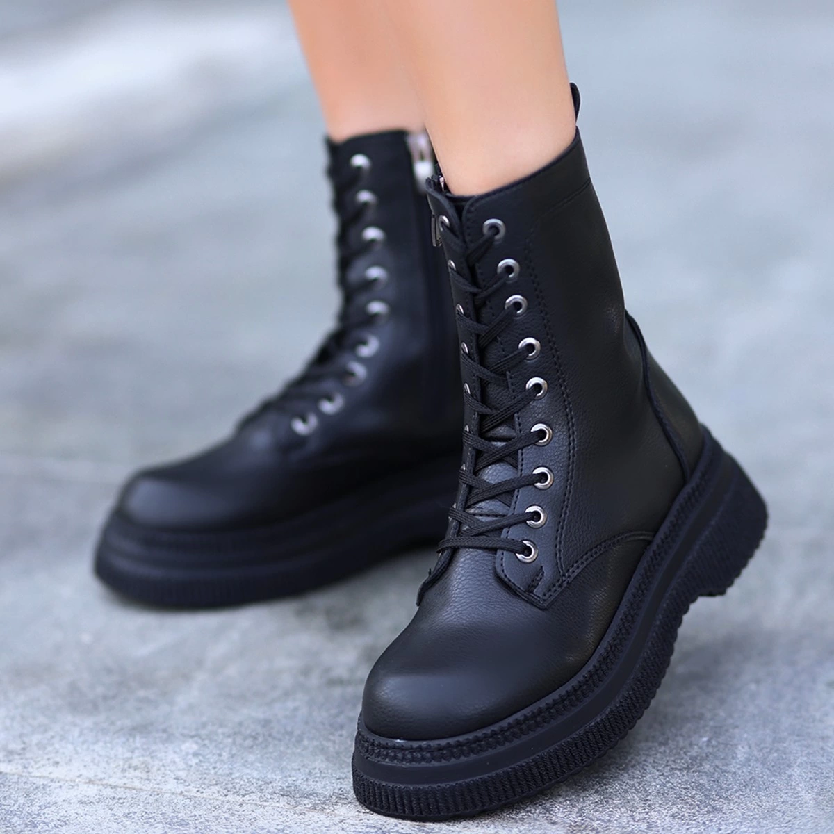 Roxan Siyah Cilt Bağcıklı Bot (Numara: 39)