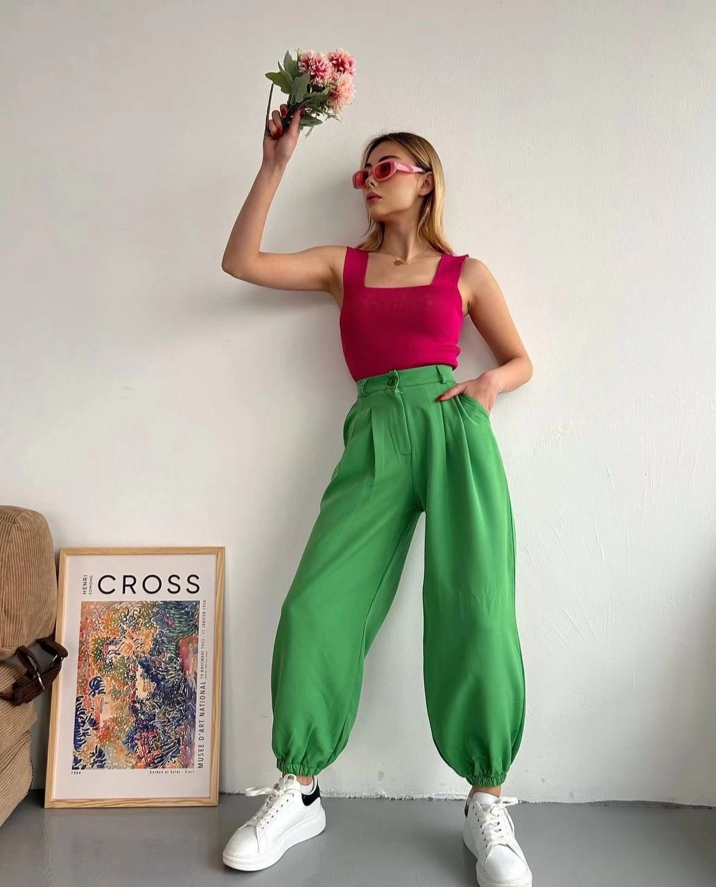 Kadın giyimde şıklık ve rahatlığı bir arada sunan Yeşil Şalvar Pantolon S23202, gardırobunuzun vazgeçilmezi olmaya aday! Kaliteli kumaşı ve modern tasarımıyla öne çıkan bu pantolon, her mevsim ve her kombinle rahatlıkla kullanabileceğiniz bir parça.