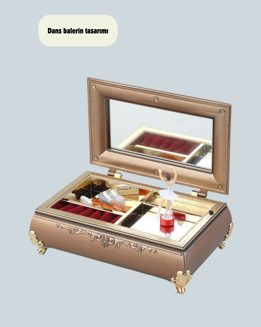Kutunun iç kısmında balerin figürü yer alır. Müzik başladığında bu figür eşliğinde oluşan görüntü, masalsı bir hava yaratır ve ürüne benzersiz bir karakter kazandırır. Melodi, ortamda hoş bir atmosfer oluşturur ve ürünü sadece bir takı kutusu olmaktan çıkarıp duygusal bir obje haline getirir.