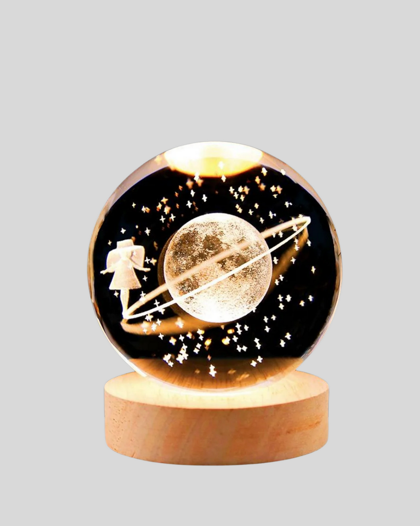 Sarı Işıklı Dekoratif Cam Küre Kız Figürlü Ahşap Standlı