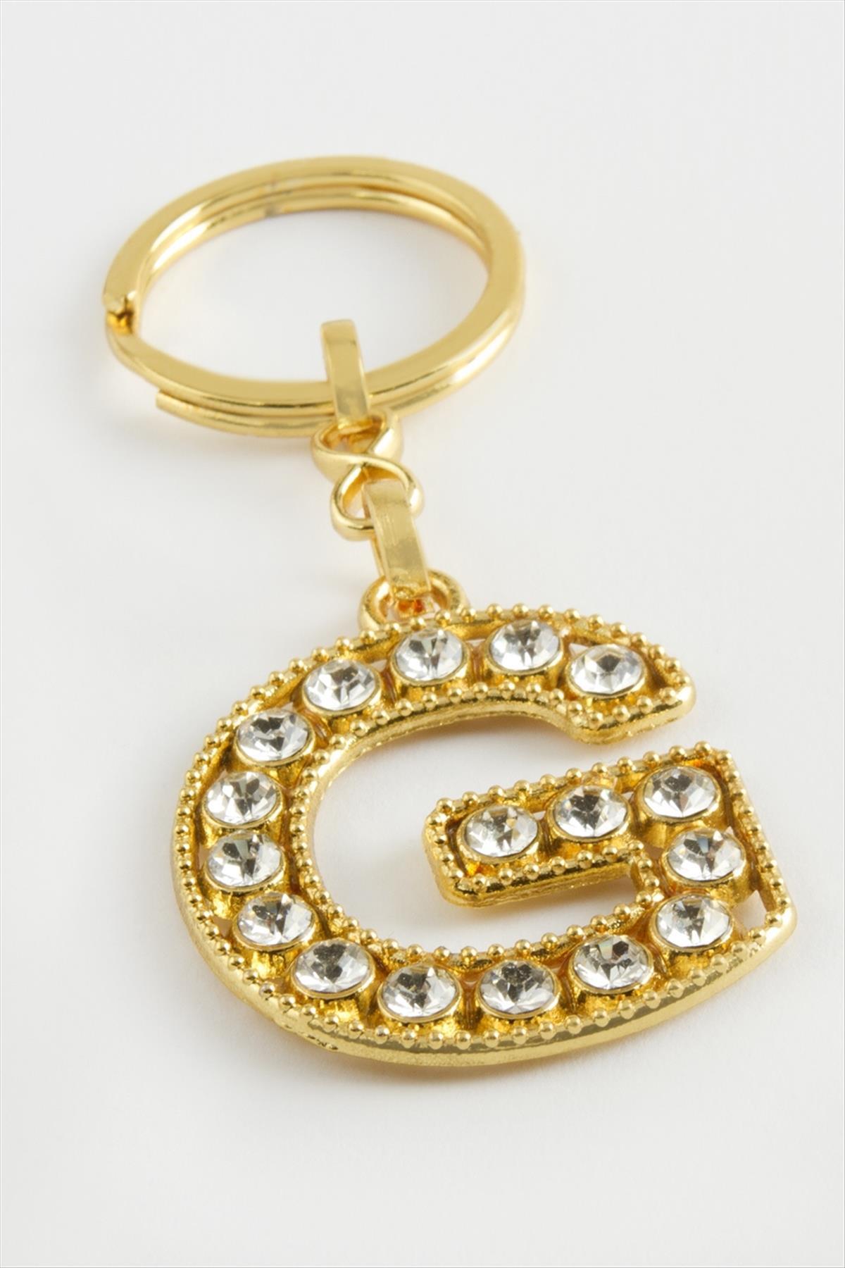 Sarı Renkli Taşlı Harf Anahtarlık-G