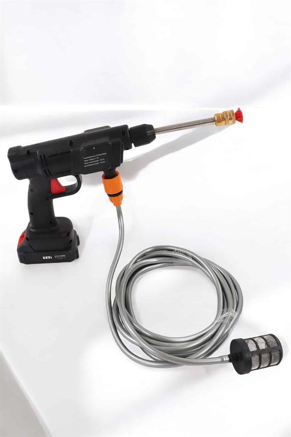 Yüksek Güçlü Motor 300W motorlu, maksimum 30 Bar su basıncına sahiptir. Verimli ve hızlı temizlik için yeterince güçlüdür. Ayrıca aşırı sıcaklık için otomatik kapanma özelliğine sahip bir sıcaklık koruma fonksiyonuna sahiptir. ve aşırı yük, güvenlik tehlikelerini ortadan kaldırabilir.Kullanımı Kolay kendinden emişli / musluk 2 çeşit su girişi, su almak daha uygun. Kurulumu kolaydır, tüm arayüzler hızla takılıp kurulur. Filtre sepetli 5 m’lik hortum, kirleri, parçacıkları, atık yaprakları, camuru vb. etkili bir şekilde filtreleyebilir. Kovadan/gölden/nehirden/musluktan kolayca su alabilirsiniz. Bu kablosuz yüksek basınçlı su tabancası, geleneksel küçük yüksek basınçlı temizleyicilerden daha taşınabilirdir.Şarj Edilebilir Pil 1 adet çıkarılabilir 15000mAh yüksek kapasiteli lityum pil ile donatılmıştır ve uzun süreli kullanım sağlar. Dolu şarjlı tek pil ile aracınızı rahatlıkla yıkayabilirsiniz. Bir kez tamamen şarj olması 4 saat sürer ve tek bir pilin pil ömrü 25 dakikaya kadar çıkar. Gövde su geçirmez özel malzemeden yapılmış olup, su ve elektrik izolasyonu daha güvenlidir. Her kullanımdan sonra pili kuru tutun, zamanında tamamen şarj edin.Mükemmel Hizmet Bu çok amaçlı yüksek basınçlı su tabancası, araba yıkama, bahçe sulama, tarımsal sulama ve günlük temizlik için çok uygundur. kullanımınız için 2 farklı nozul etkili temizlik. Akülü kablosuz yüksek basınçlı temizleme makinemiz çift sulama sistemine sahiptir. Sektör modeli ve doğrudan enjeksiyon modu için uygun iki çeşit nozul ile donatılmıştır. Sağlanan yüksek/düşük basınçlı nozullar ve temizlik maddesi tankları, araçları, bisikletleri, tekneleri, pencereleri ve şeritleri temizlemek için yaygın olarak kullanılabilir. Güç: 300W / 48V – 10ABatarya Kapasitesi: 15.000mAhKullanım Süresi: 20-30 DakikaAğırlık: 2kgHortum Uzunluğu: 5metreÇalışma Basıncı: 24.5bar/350psiPüskürtme Tepki Hızı: <15 sn.Su Emme Yüksekliği: /3.5mModel No: 8106 Paket İçeriği:* 48V Sulama Tabancası* Taşıma Çantası* 24V 15.000mAh Akü* 5 metre esnek boru* EU şarj adaptörü* Hortum filtresi* 2 Adet uç (düz ve dağınık su püskürtmesi)* 2 adet Hortum bağlantı ucu* Uzatma şaftı* Köpük veya ilaç haznesi