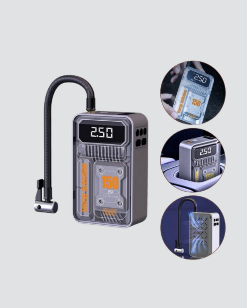 Bu şarjlı hava pompası, kablosuz ve taşınabilir yapısıyla her an elinizin altında olabilecek pratik bir cihazdır. 150 PSI maksimum basınç gücü sayesinde otomobil, motosiklet, bisiklet ve top şişirmede üstün performans gösterir.