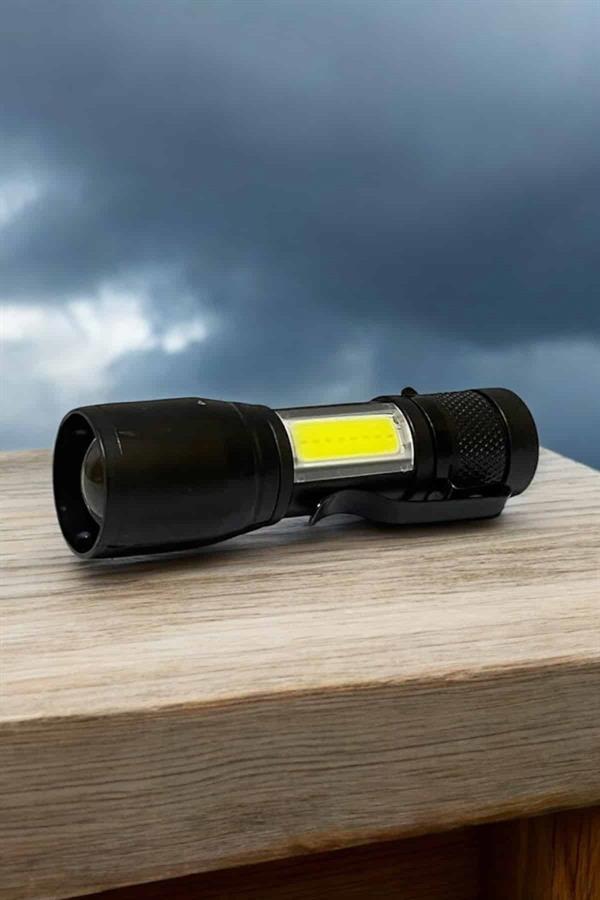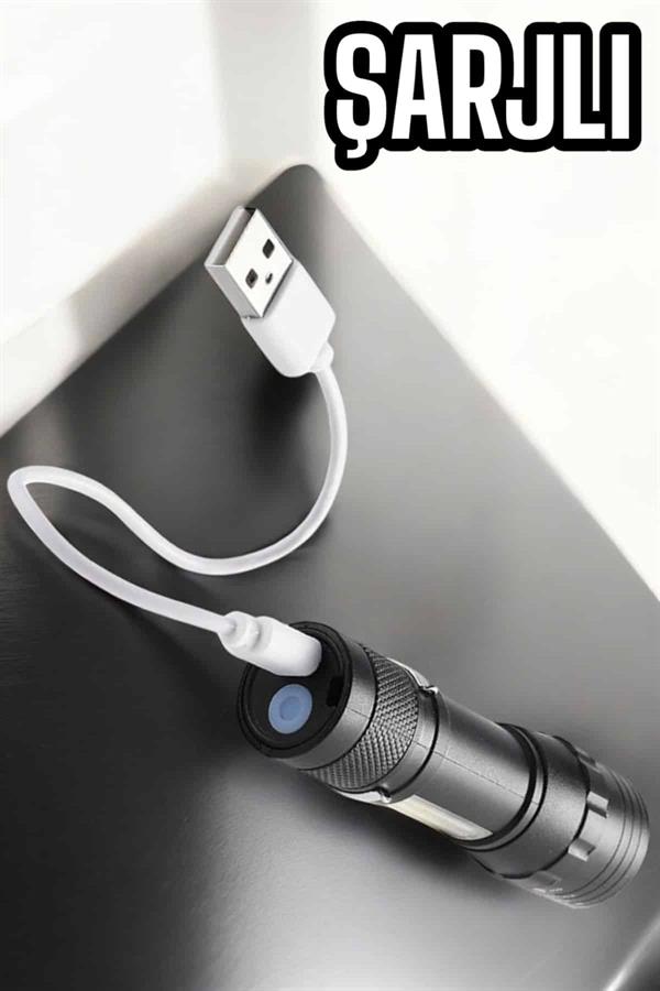 Şarjlı Metal Zoomlu El Feneri Işıldak Led Işık Taşınabilir El Lambası