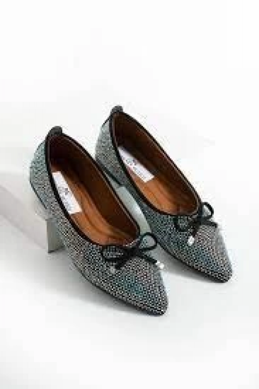 Sarra Siyah Saten İşlemeli Babet Ayakkabı (Numara: 36)