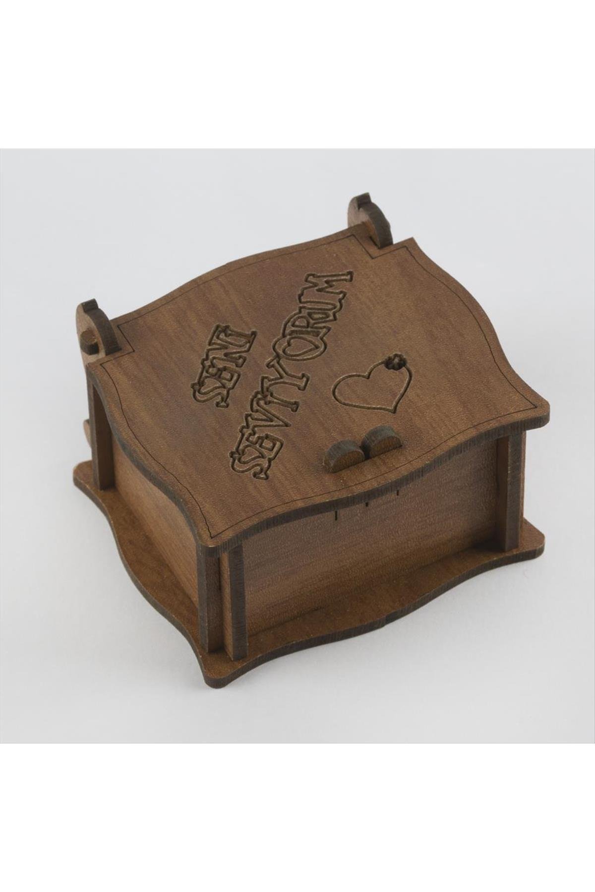Seni Seviyorum Figürlü Ahşap Yüzük Kutusu-Kahverengi