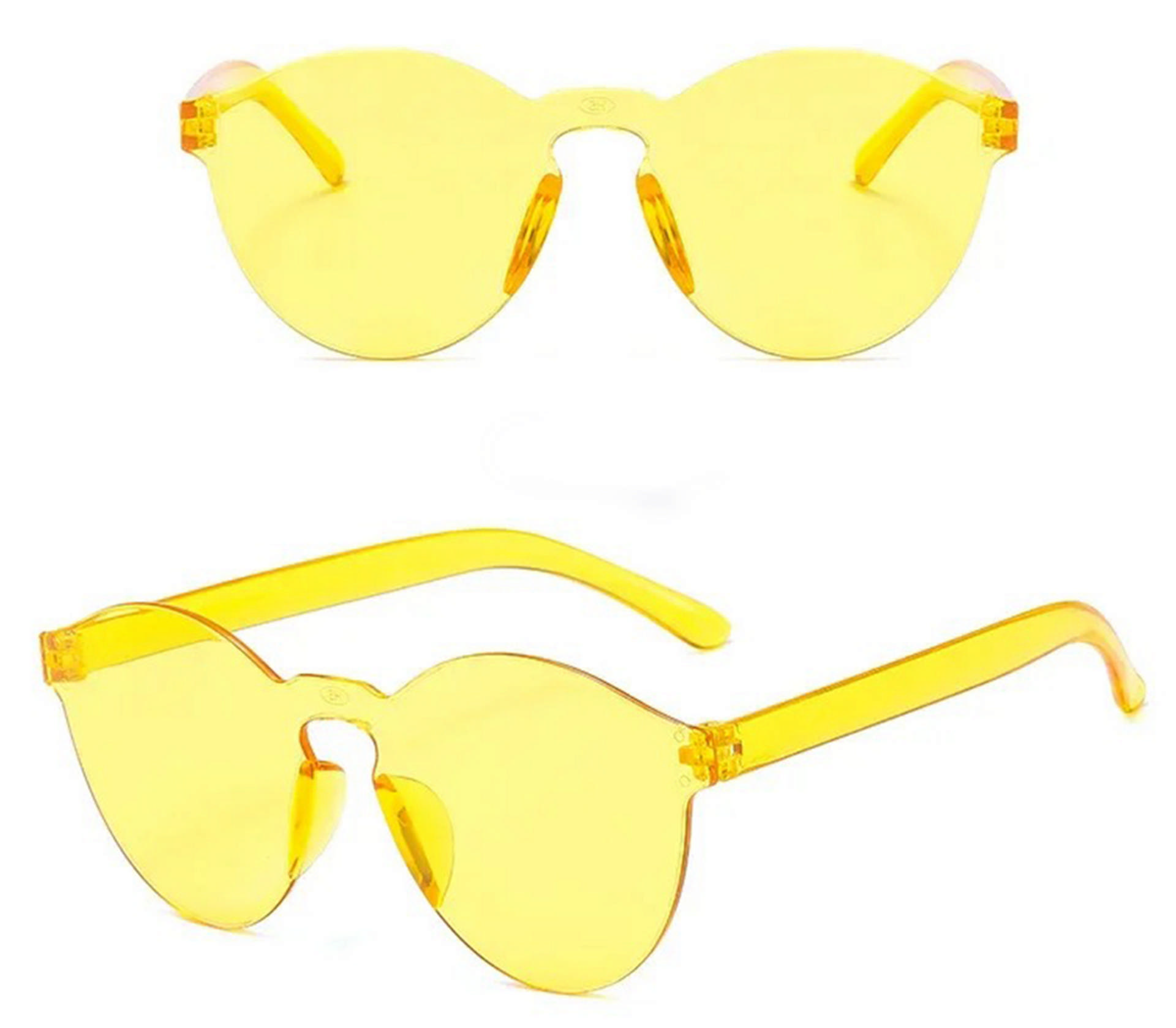 Dayanıklı sert mika malzemeden üretilen bu gözlük, 5×14 cm ölçüsüyle yüz hatlarına uyumlu olup retro ve modern tarzı bir arada sunar. Çerçevesiz tasarımıyla dikkat çekici bir aksesuar olan sarı şeffaf lens, enerji dolu ve iddialı bir stil yaratmak için idealdir.