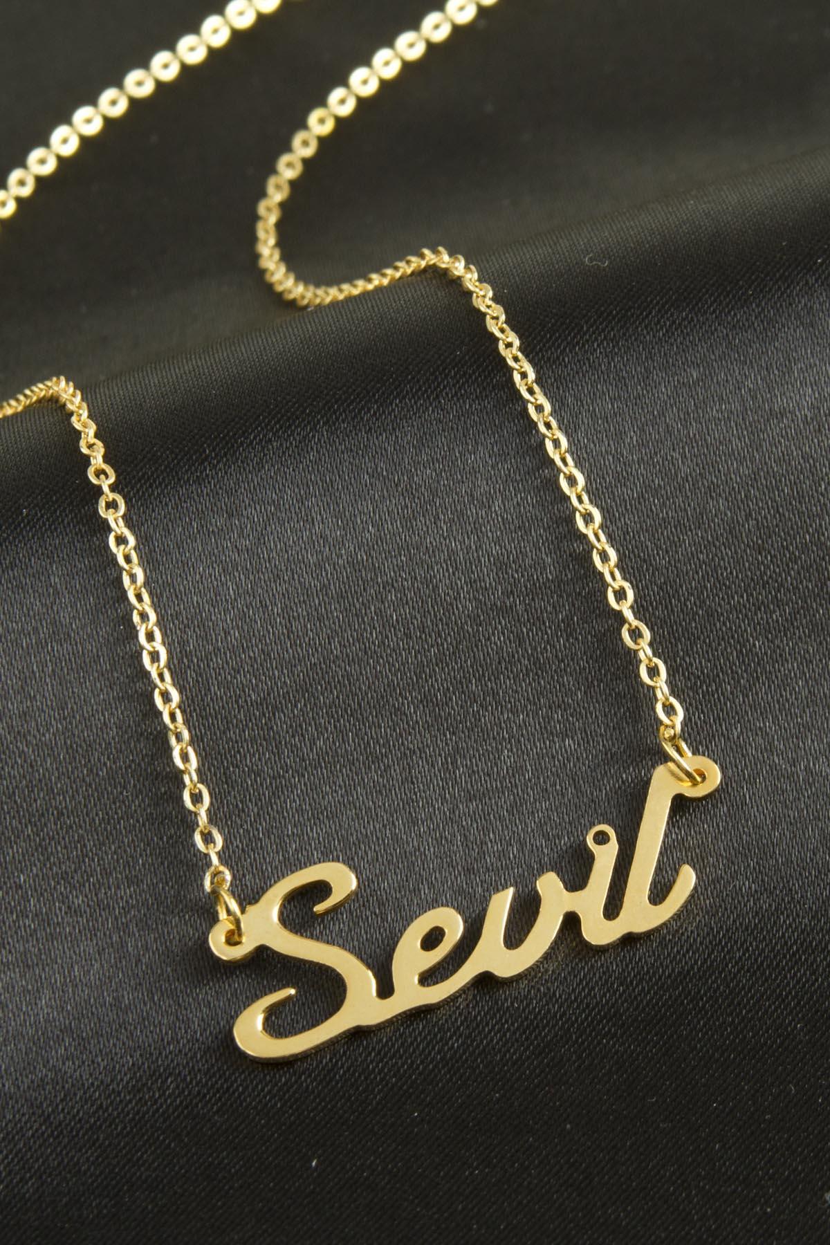 Kolye. Sevil isimli kolye, ürünlerimiz pirinç kesim olup, altın kaplamadır, kararma yapmaz.