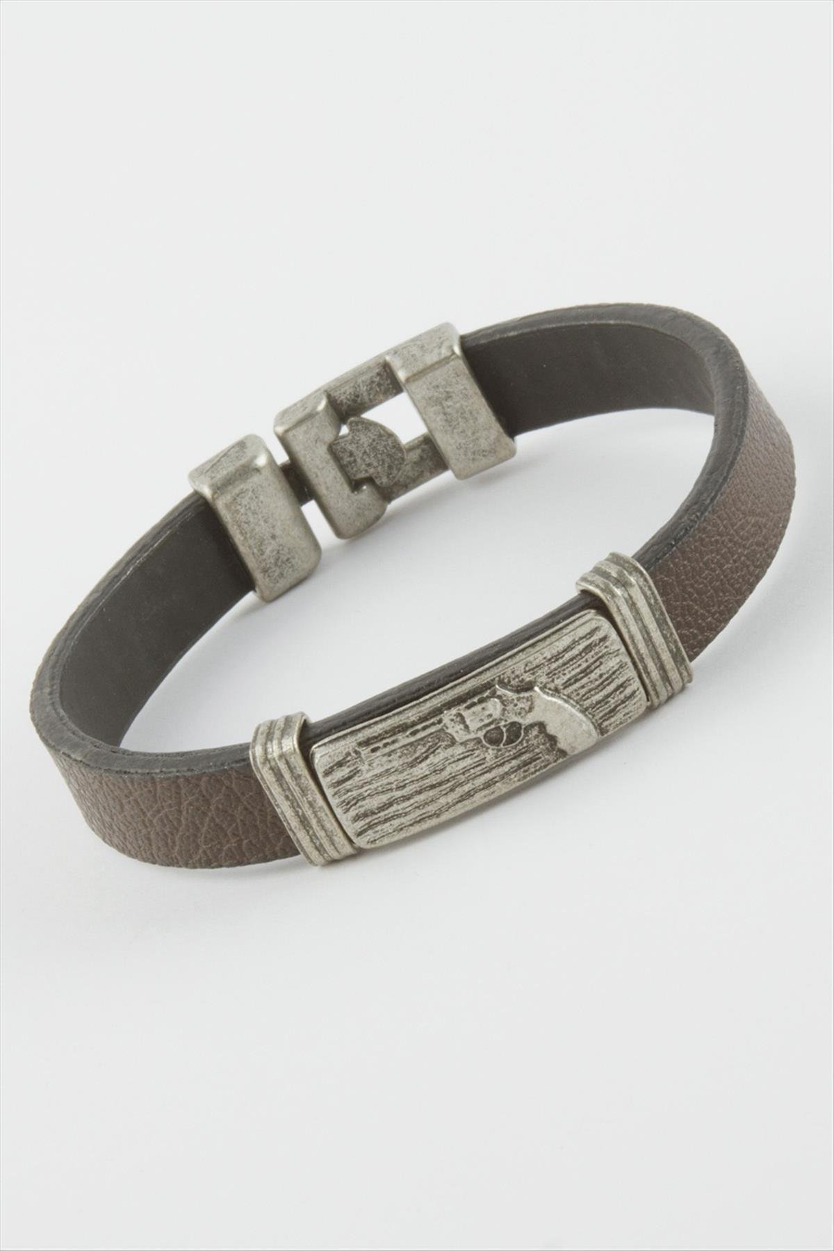 Silah Suni Deri Bileklik-Kahverengi