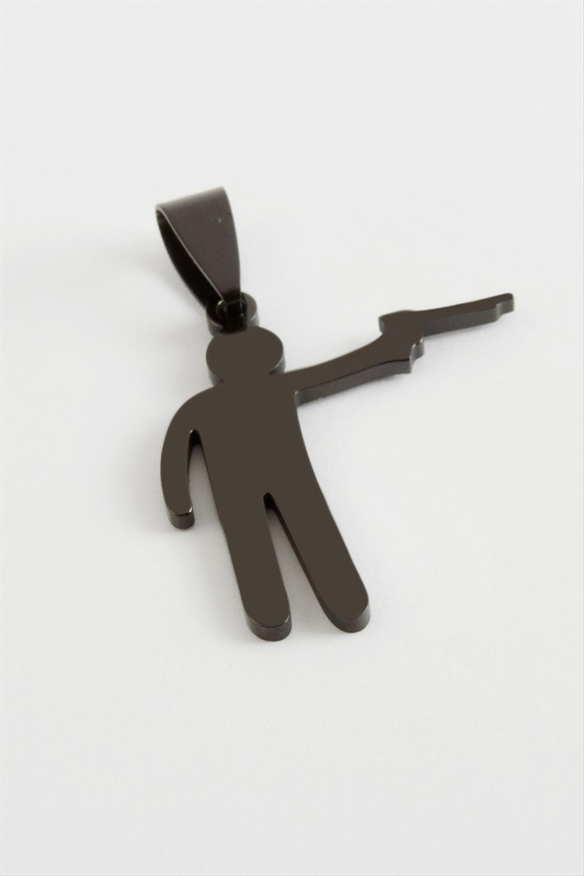 Silahlı Asker Çelik Kolye Ucu 3 cm-Siyah