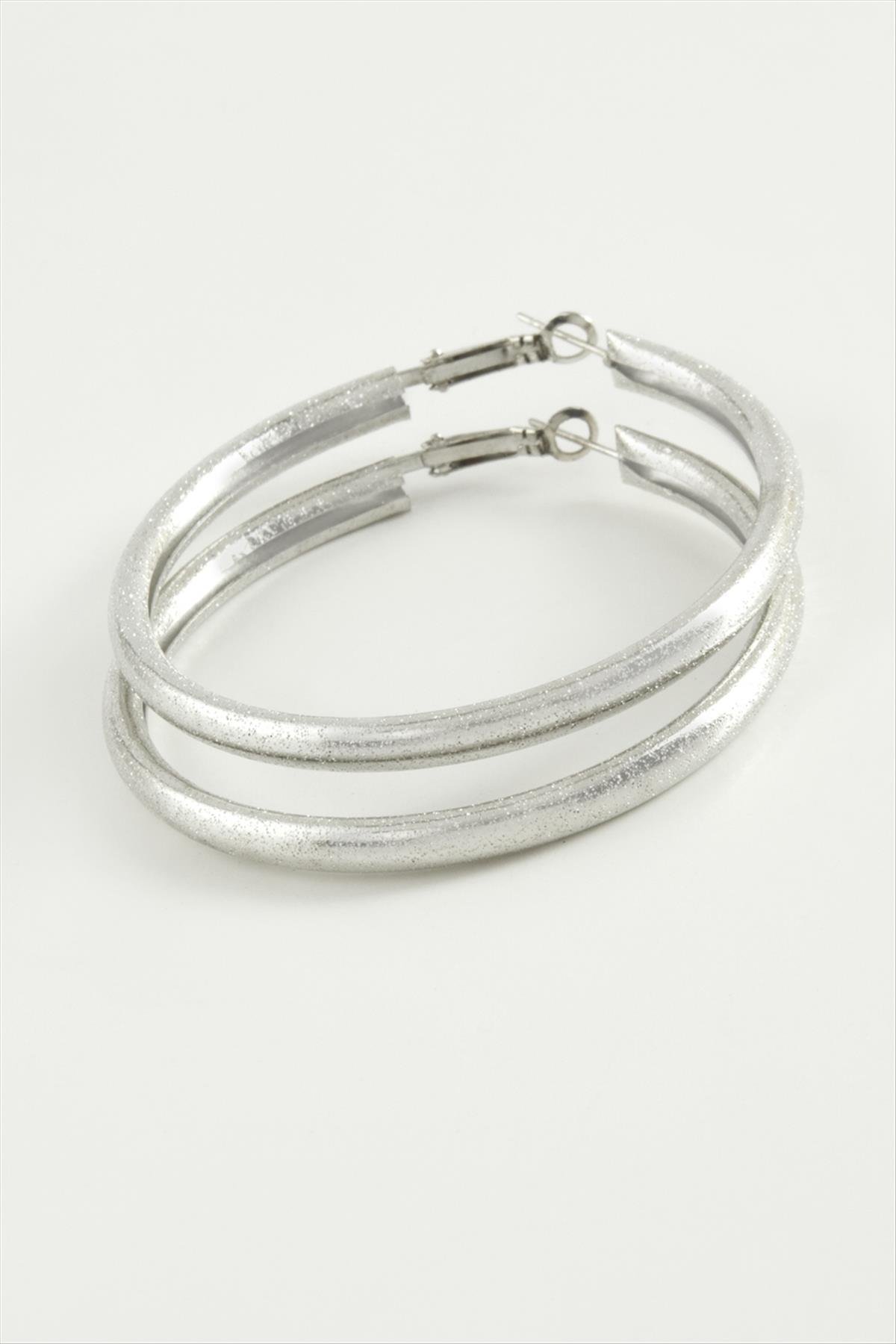 Simli Boru Halka Küpe 4,5 cm-Gümüş Rengi