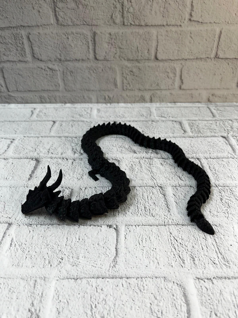 Siyah Hareketli Ejderha Figürü Esnek Gövdeli Dekoratif Tasarım 60 cm