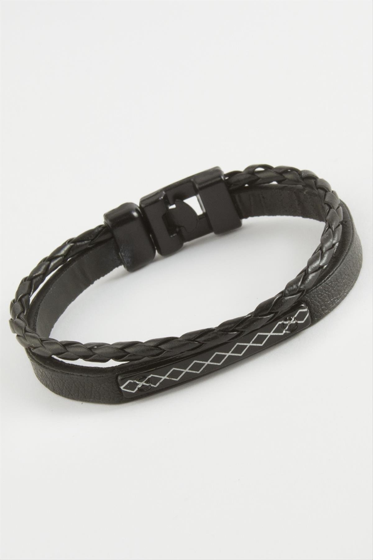 Sonsuzluk Kaliteli Suni Deri Bileklik-Siyah