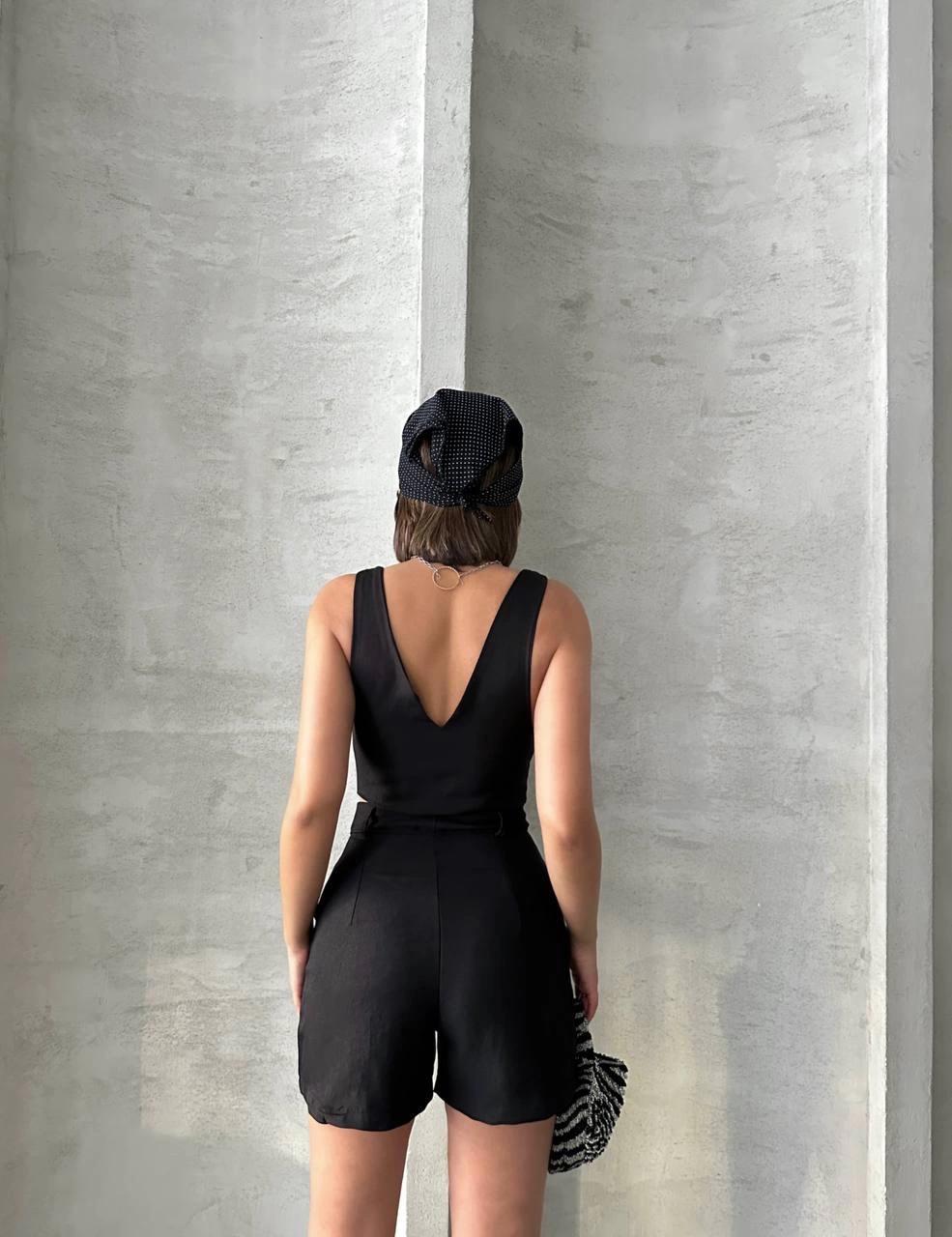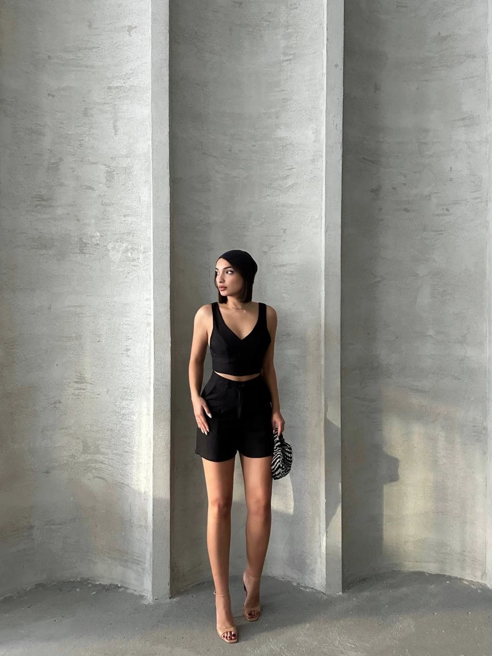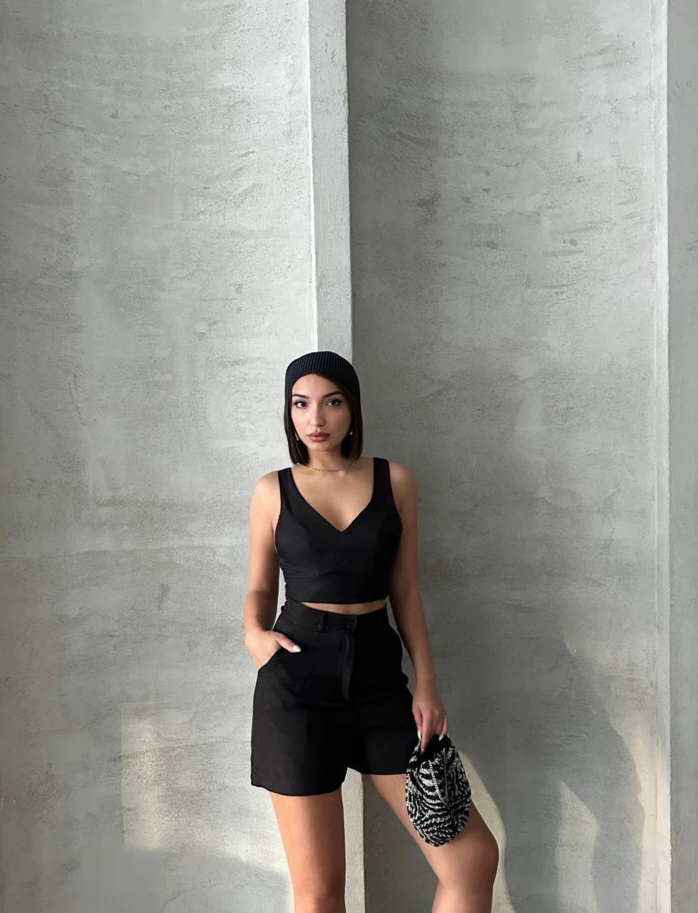 Şortlu Keten Takım S255014 Siyah (Beden: S)