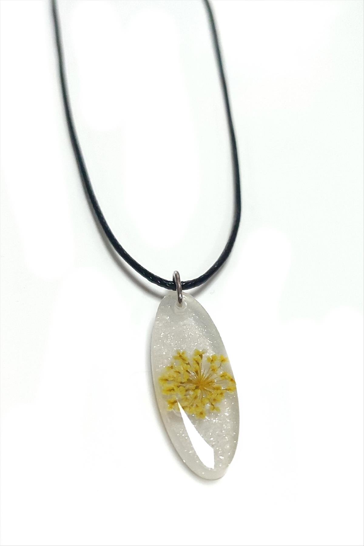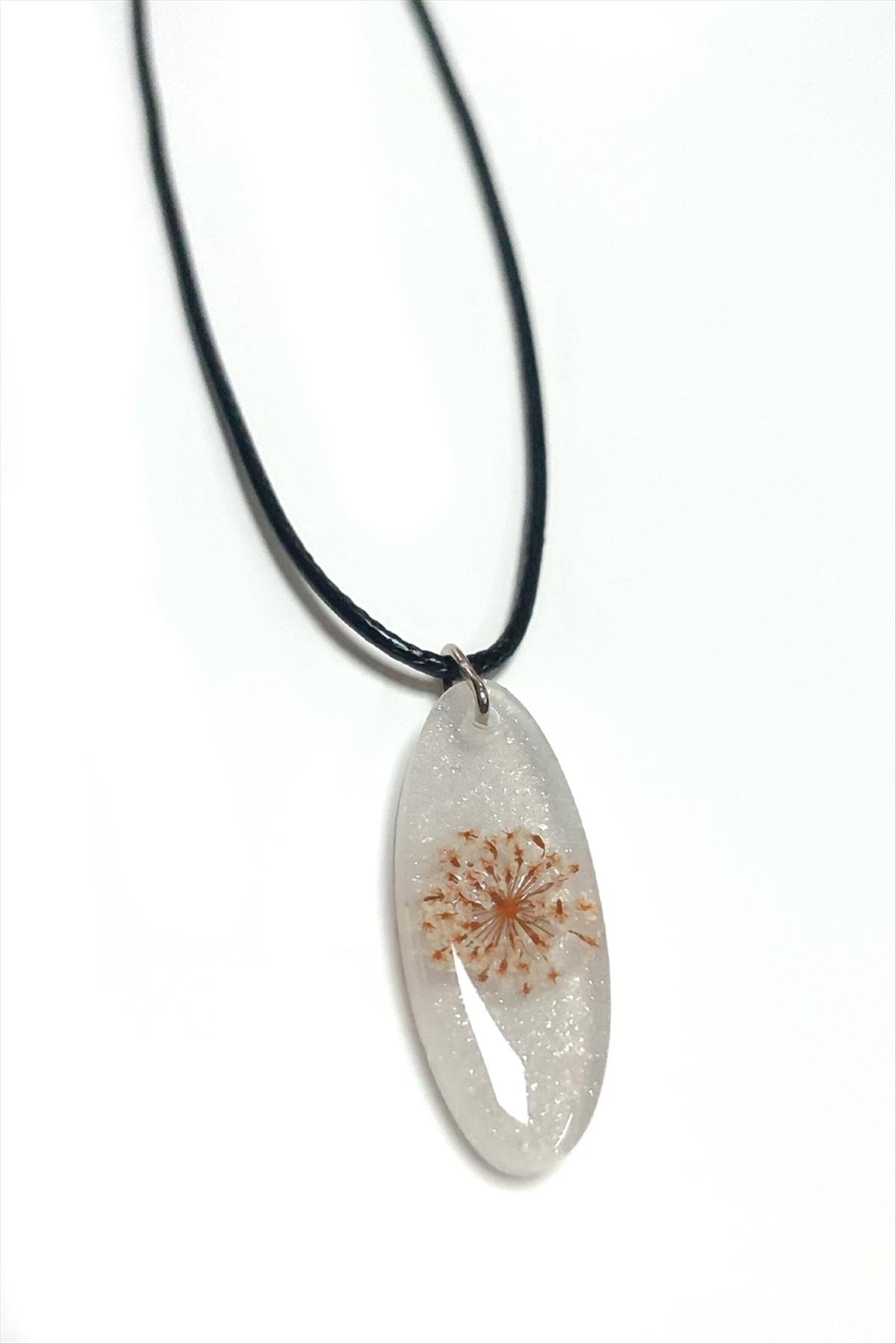 Sultanotu Çiçeği Oval Epoksi Kolye-Beyaz