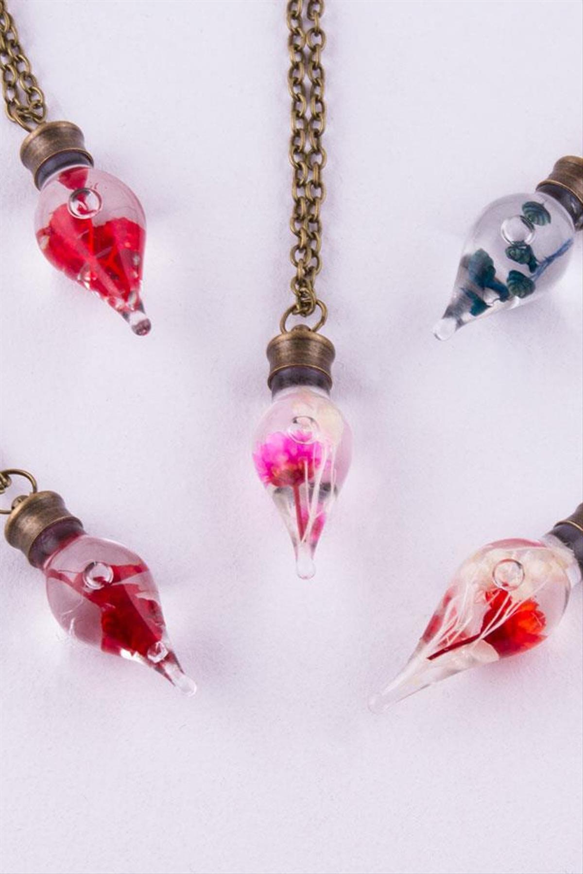 Sulu Çiçek Fanus Canlı Kolye-Antik