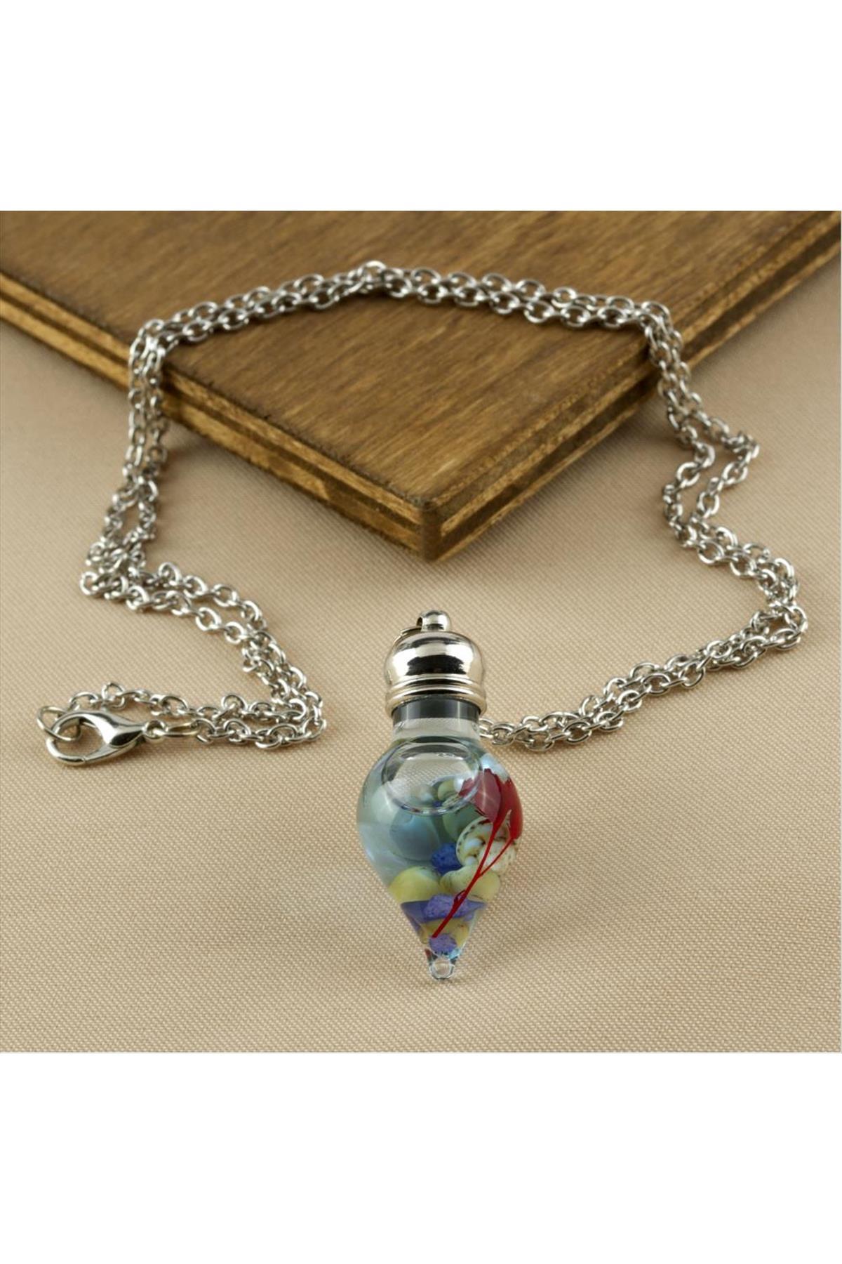 Sulu Çiçek Fanus Canlı Kolye-Renkli