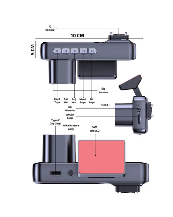 Bu sistem, hem sürüş hem park halindeki tüm durumları güvence altına alır. Ön kamera 1080p görüntü kalitesiyle plaka ve detay yakalamayı garanti eder. İç kamera, özellikle ticari araçlar için güvenlik sağlar. Arka kamera, park manevralarında yardımcı olur ve geri vitesle birlikte otomatik görüntü sağlar. 170° geniş açı sayesinde tüm çevre kontrol edilir. G‑sensör otomatik olarak kazalarda anlık koruma sağlar ve hareket algılama park halindeyken aracınızı korur. Döngüsel kayıt ve 64 GB microSD desteği ile kesintisiz kullanıma uygundur. Dahili Wi‑Fi ve mobil uygulama desteği sayesinde cep cihazlarıyla uzaktan erişim mümkündür. Kurulum basittir ve kullanıcı dostudur.