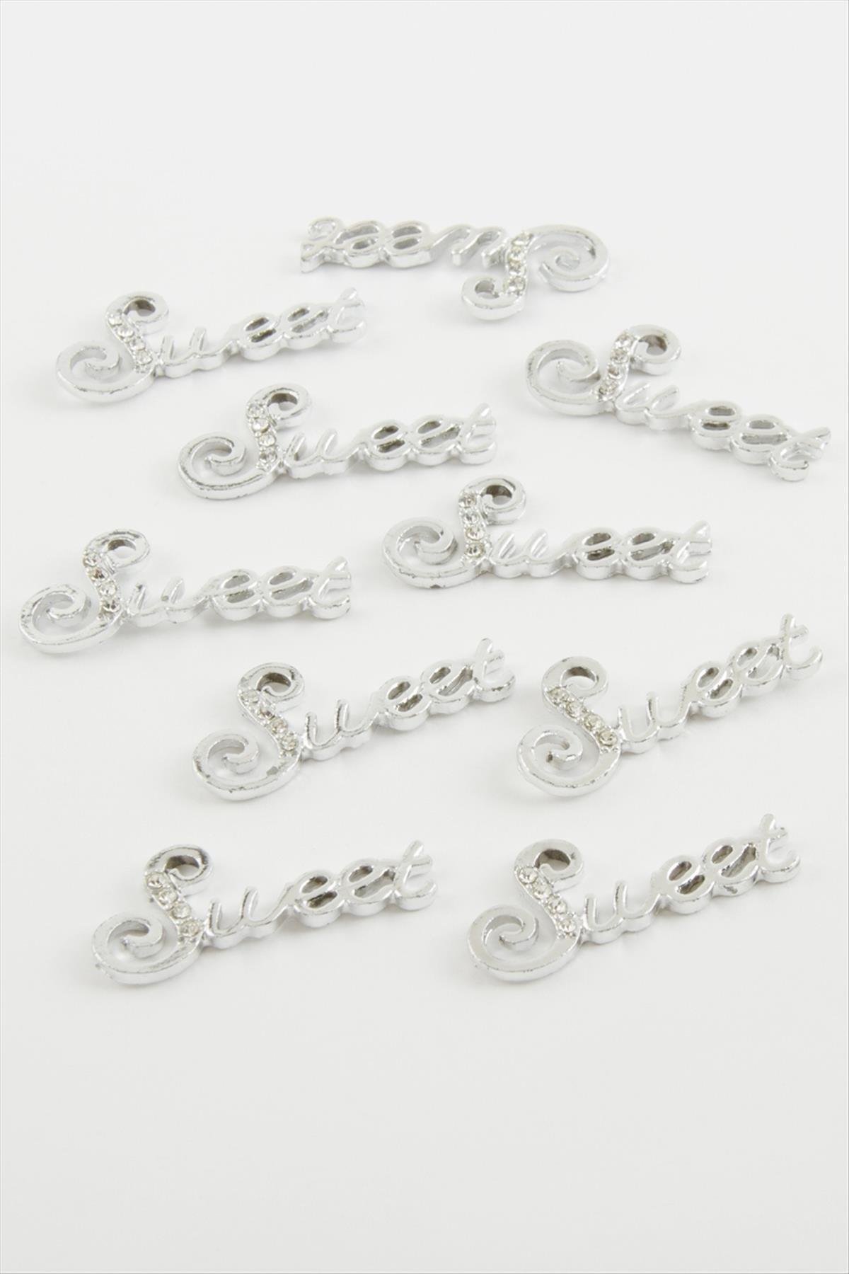 Sweet Yazılı Taşlı Kolye Ucu Aparatı 1 Adet-Gümüş Rengi