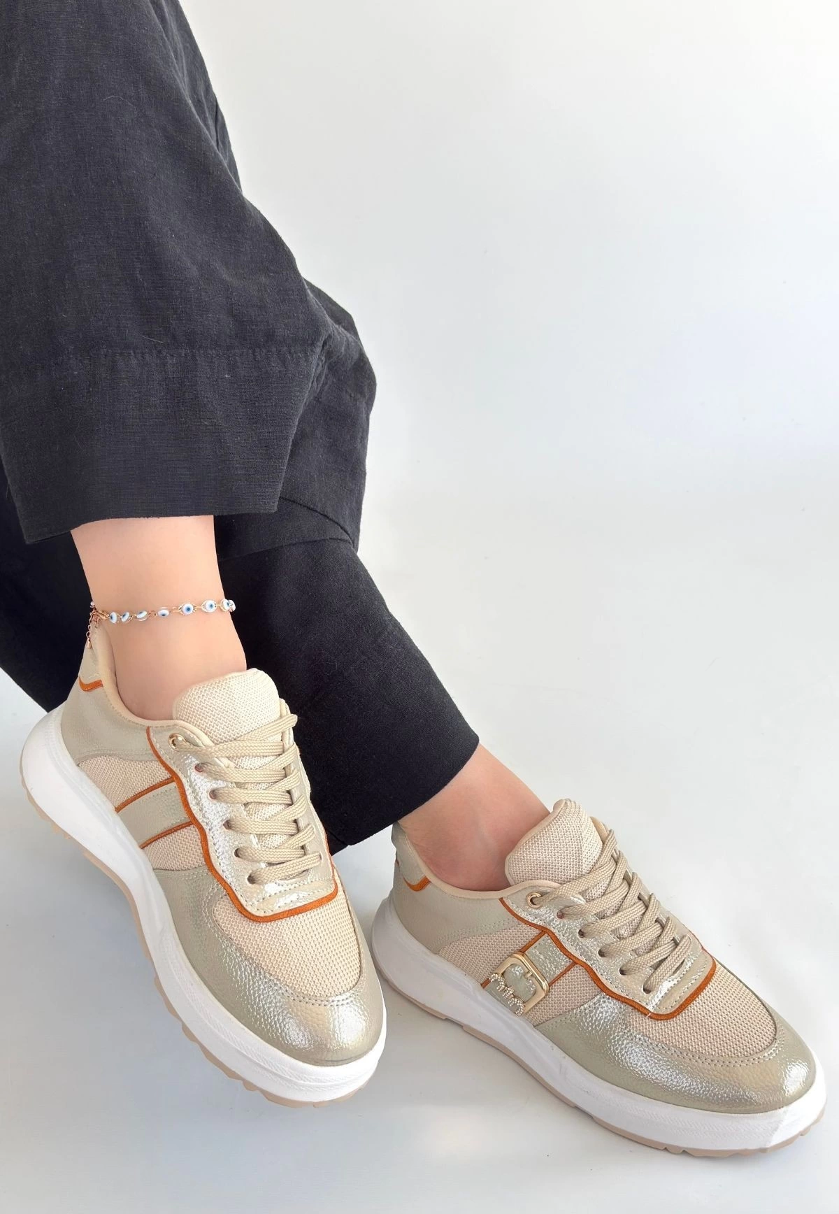 Tanwe Bej Cilt Bağcıklı Spor Ayakkabı (Numara: 39)