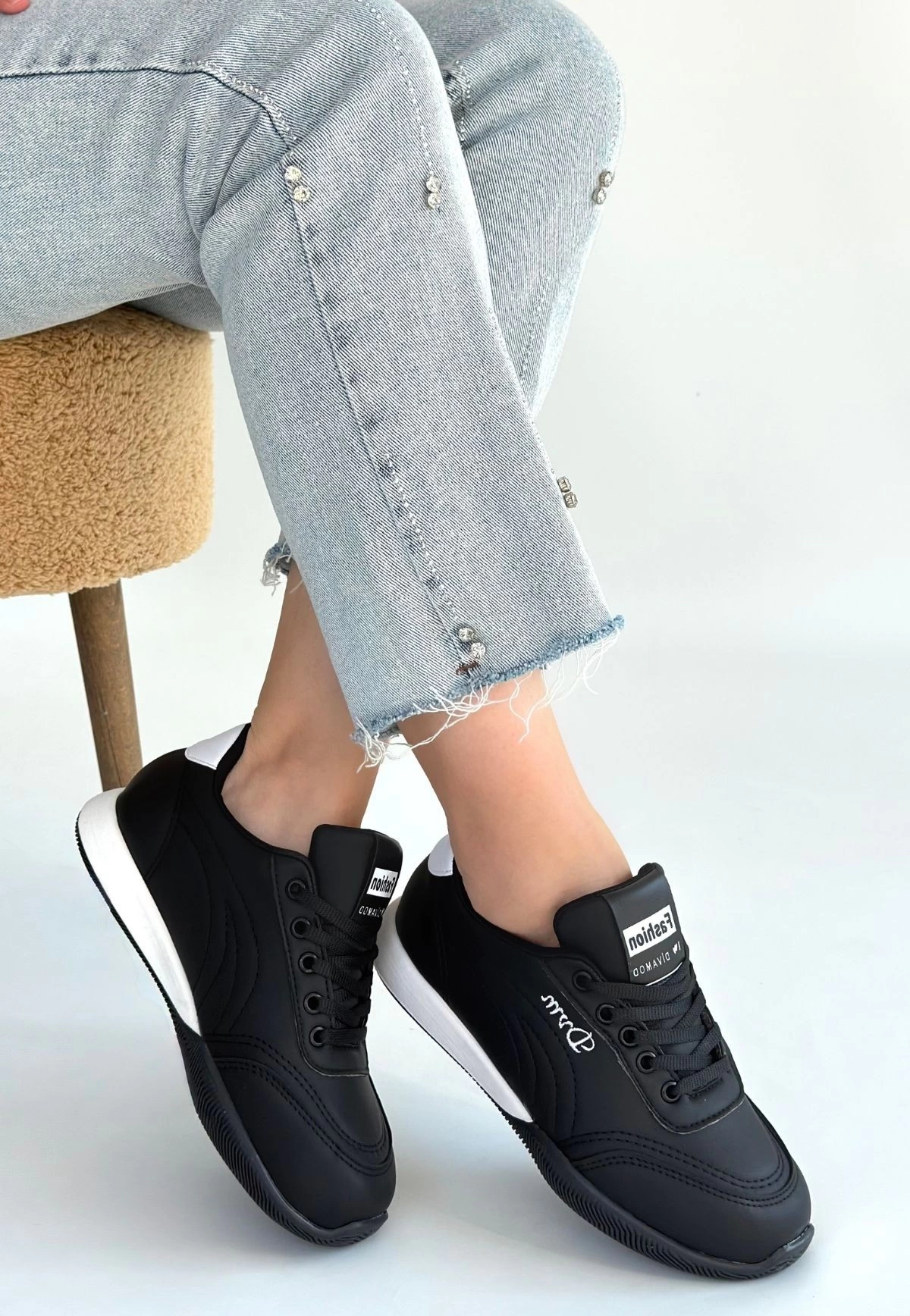 Tawen Siyah Cilt Bağcıklı Spor Ayakkabı (Numara: 38)