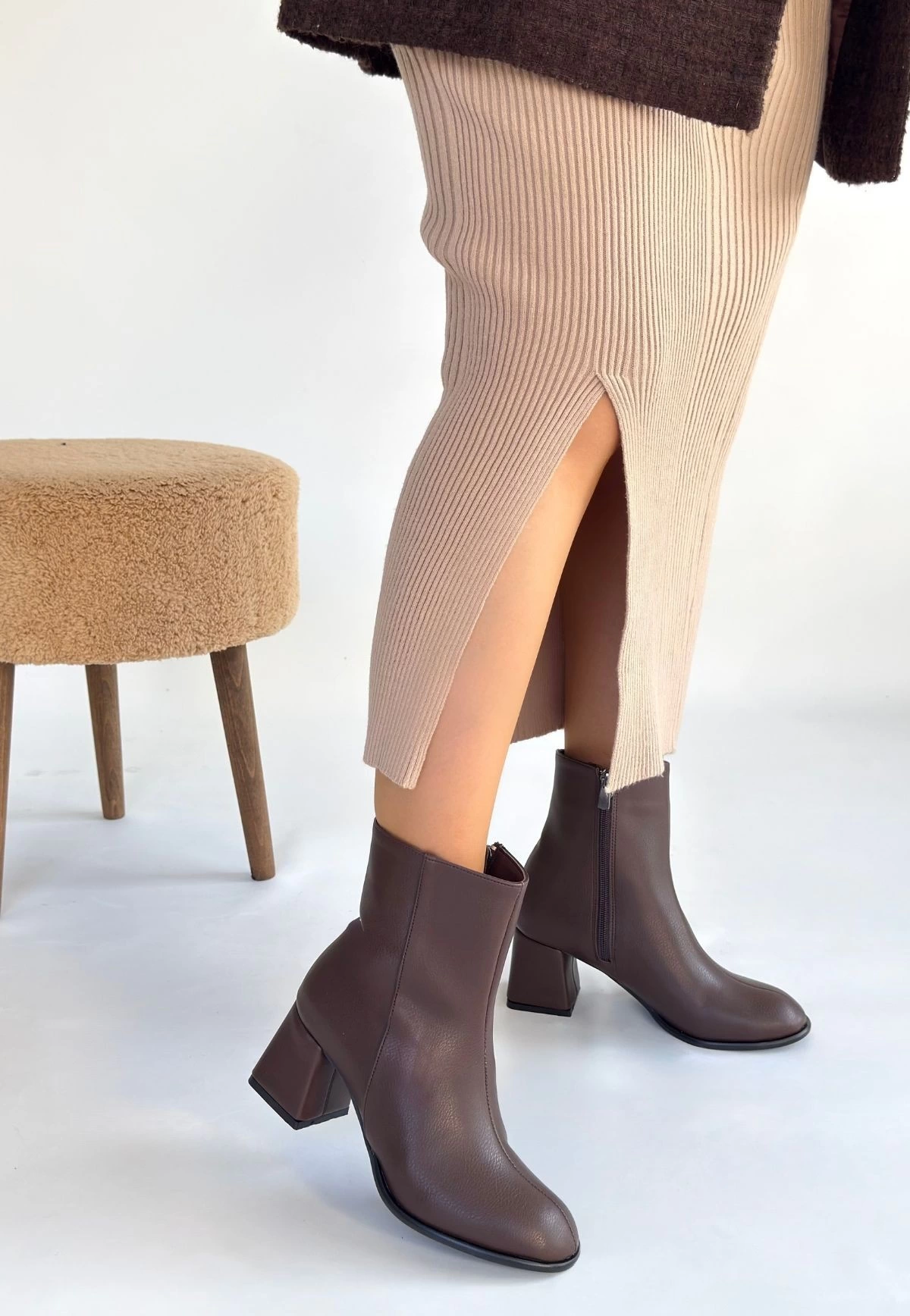 Tendy Kahverengi Cilt Topuklu Bot (Numara: 36)