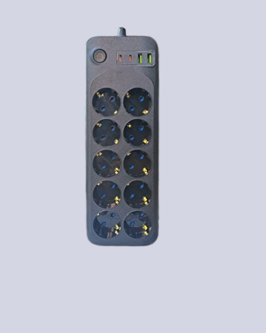 10 çıkışlı USB & Type-C destekli Termal Akım Korumalı Grup Priz, özellikle çoklu cihaz kullanılan alanlarda yüksek performans ve güvenlik sağlayarak enerji yönetimini en üst düzeye çıkarır. 10 adet priz yuvası sayesinde bilgisayar, monitör, yazıcı, modem, televizyon, ses sistemi, şarj cihazları ve çeşitli küçük ev aletlerinin aynı anda güç almasına imkân tanır. Bu sayede kablo kalabalığını azaltır ve çalışma alanını daha düzenli hale getirir.