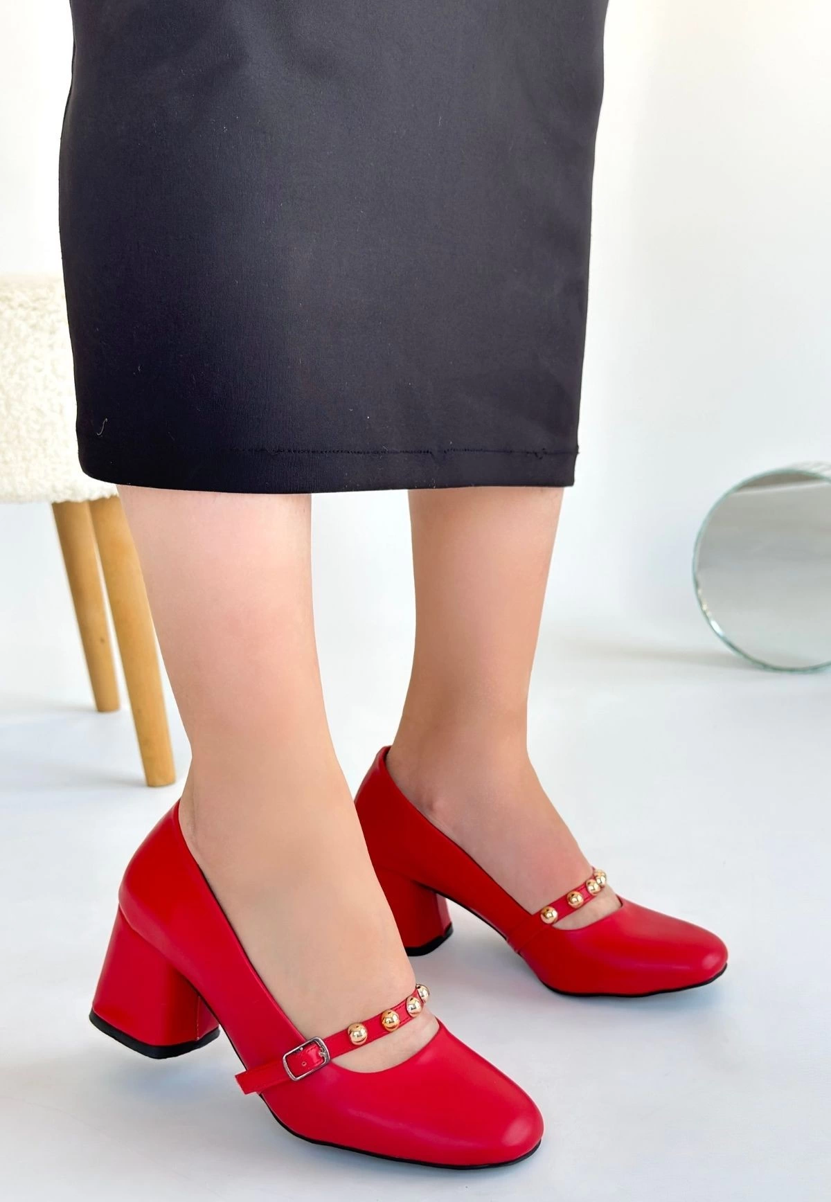 Tino Kırmızı Cilt Topuklu Ayakkabı (Numara: 38)