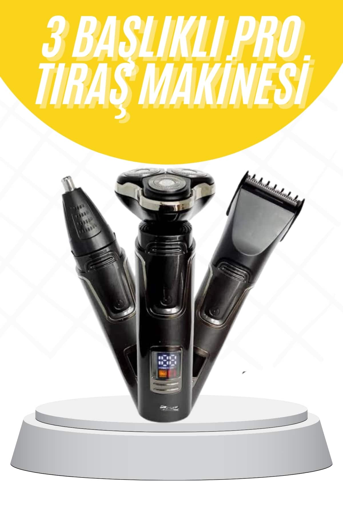Tıraş Makinesi Profesyonel 3in1 Dijital Göstergeli 3 Başlıklı Erkek Bakım