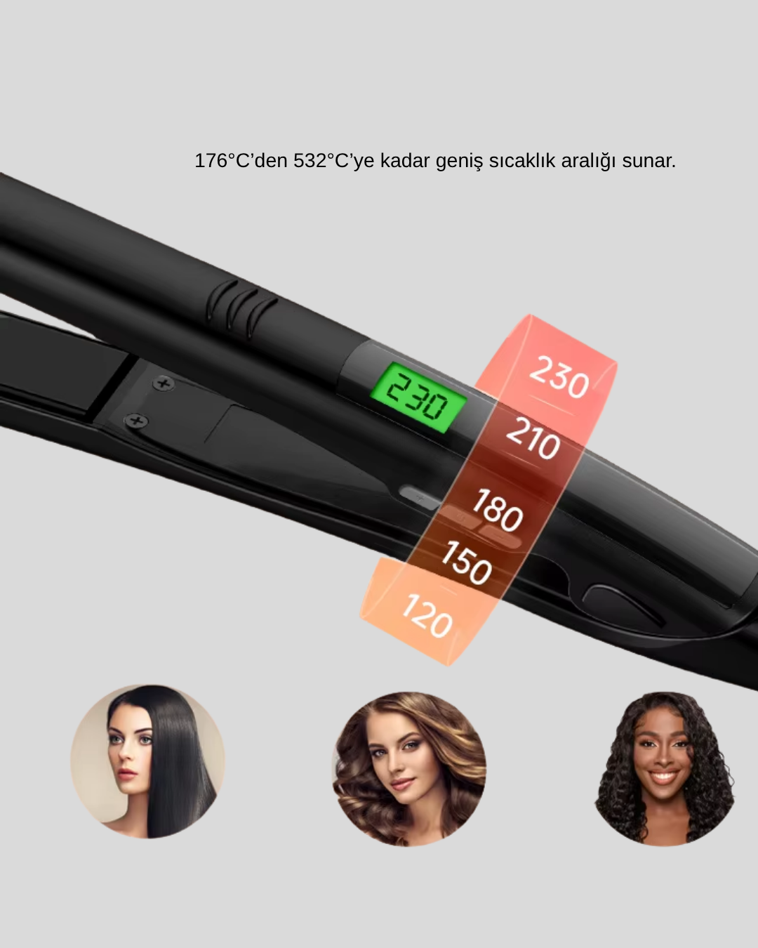 176°C – 532°C sıcaklık aralığı, farklı saç tiplerine göre optimum düzleştirme imkânı sunar.