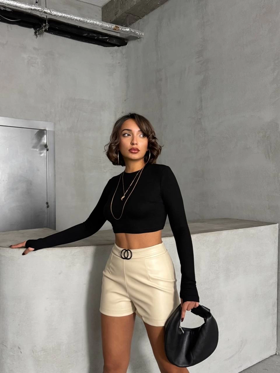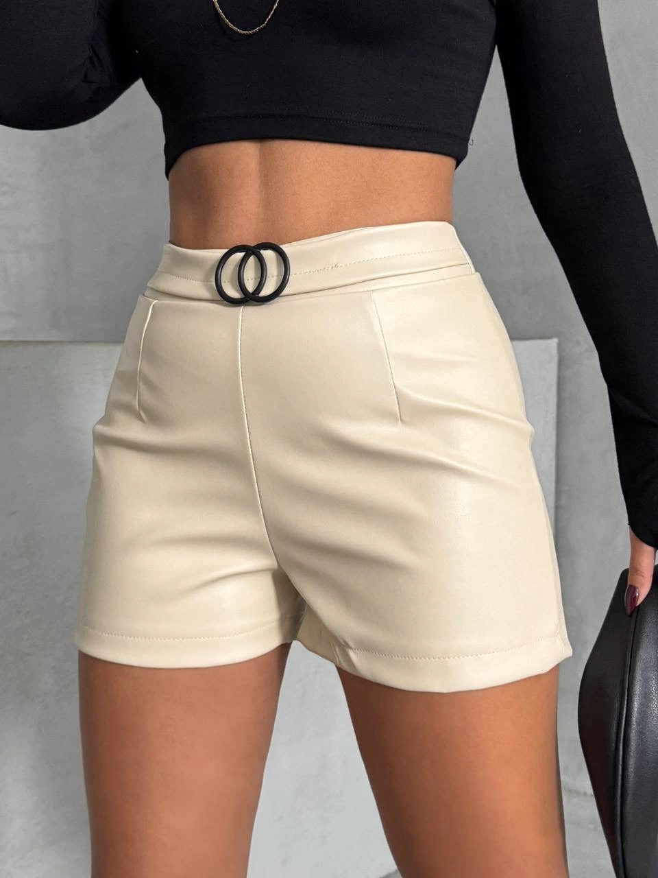 Tokalı Deri Şort H24444 Krem (Beden: S)